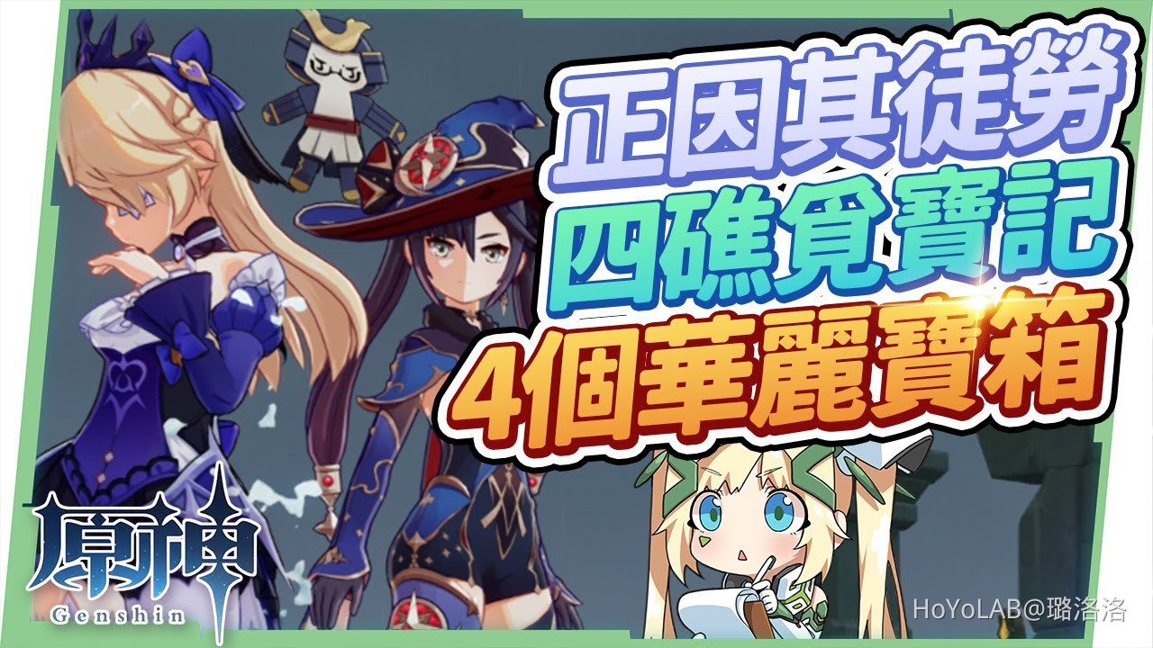 哈囉哈囉! 我是虛擬Youtuber璐洛洛,這次要帶來金蘋果群島世界任務集錦的第二部分,大多都是需要解謎和洛洛覺得比較需要抄作業,分別是正因其徒勞、蒐集8個星核來開啟的華麗寶箱、四礁覓寶記,也包含了超難懂的危危島4元素石碑解謎,這些任務都有附帶較多的原石,同時也可以順道打開許多寶箱,相關的解謎流程洛洛也會用最簡單扼要的方式呈現,提供給大家在金蘋果群島尾聲前趕快抄作業,此外洛洛的影片攻略組成員也在募集中,有興趣的話可以點擊下方影片描述欄的連結看看是不是符合條件哦!那麼就快速來看看2.8金蘋果群島的3個世界任務和4個華麗寶箱的解謎流程吧!