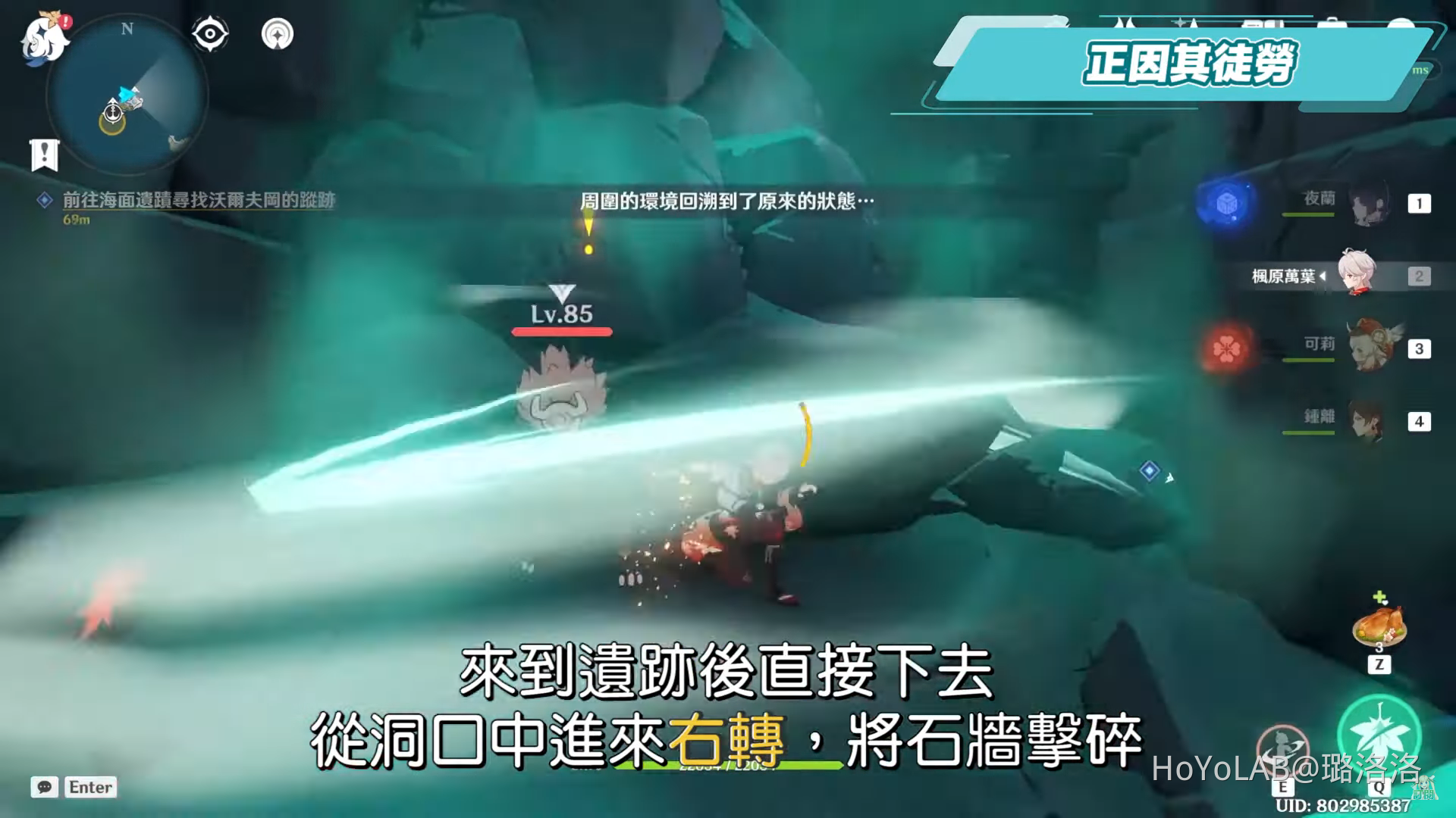 來到遺跡後直接下去,從洞口中進來右轉,將石牆擊碎