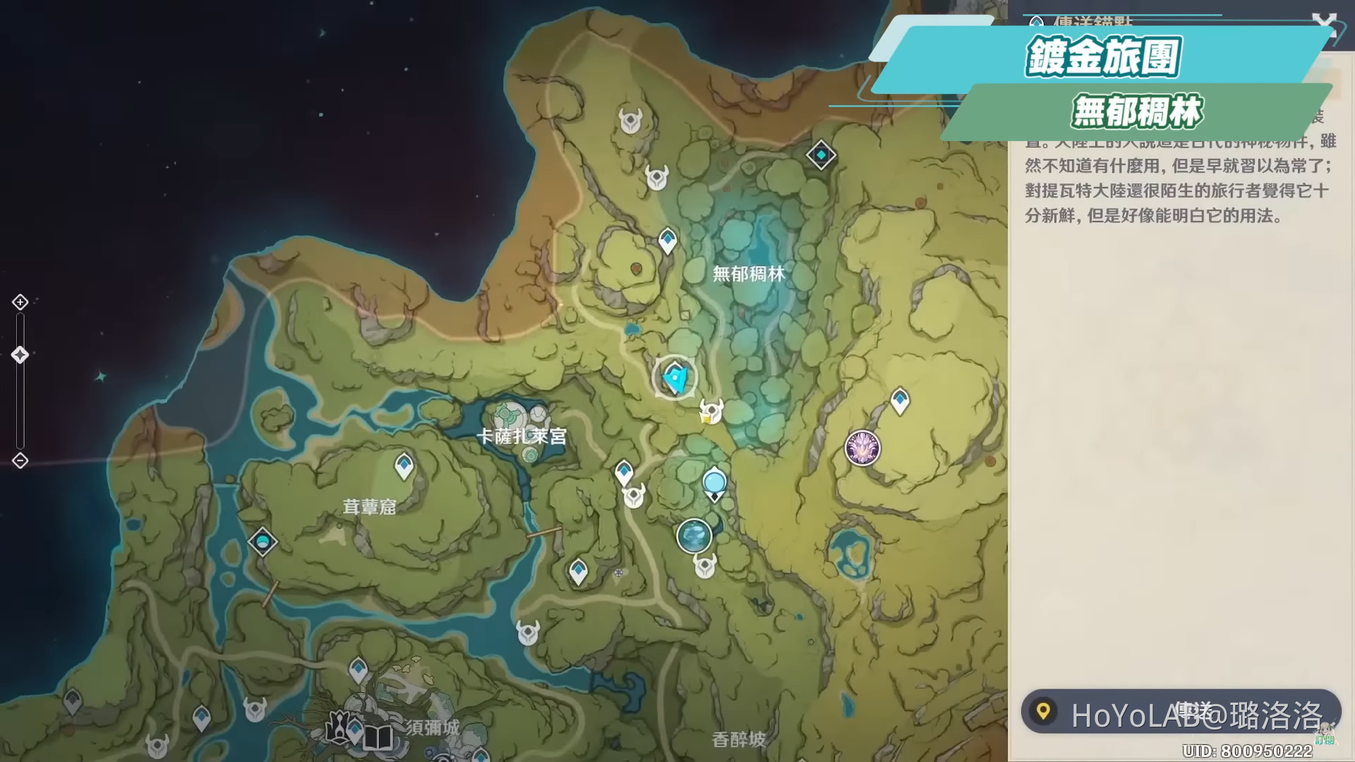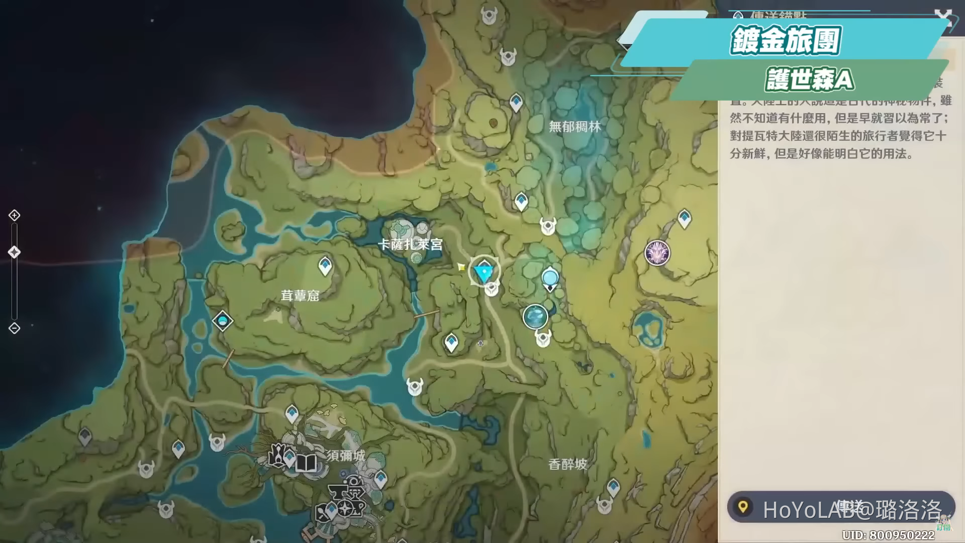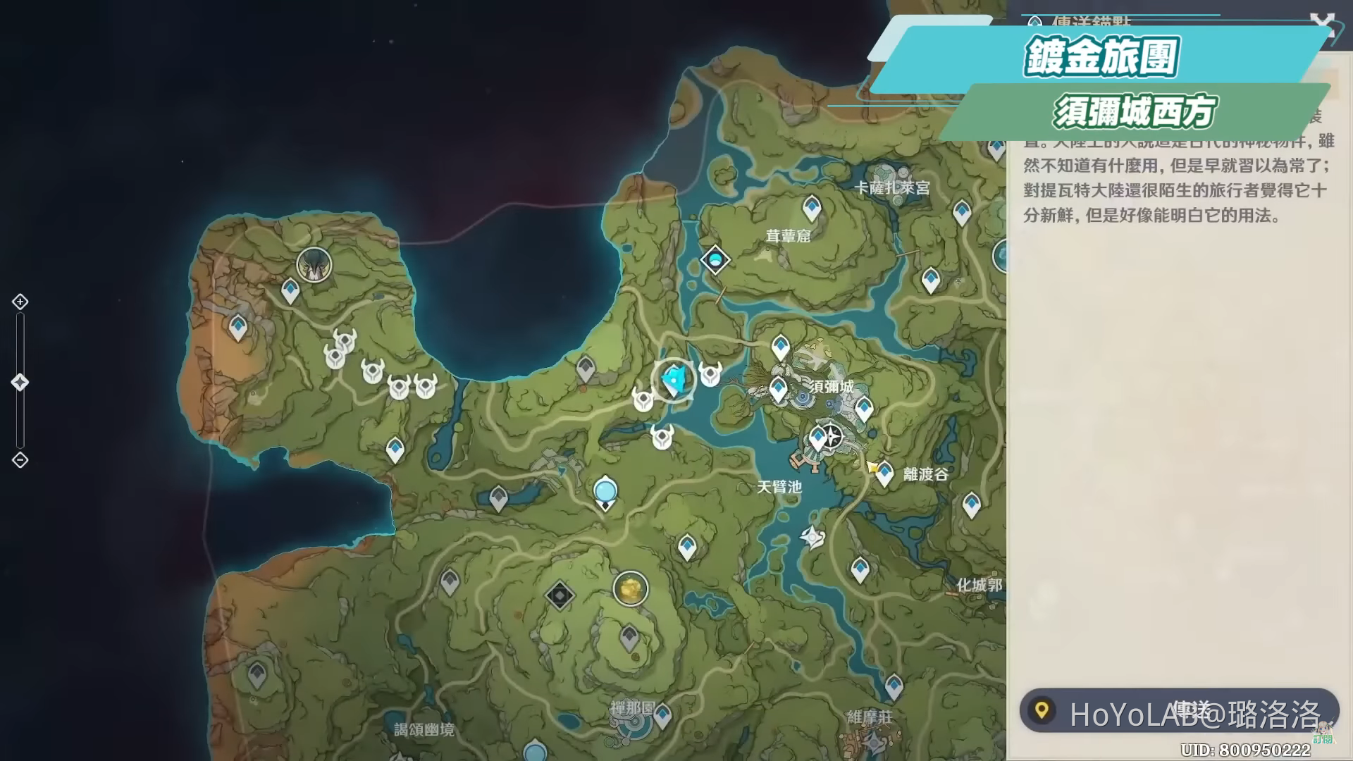 哈囉哈囉! 我是虛擬Youtuber璐洛洛,相信大家都已經在開始在肝全新的須彌地圖了,同時對於全新的草元素角色應該也躍躍欲試,不管是有抽提納里或是拿了柯萊的肉肉們,相關的突破素材都需要在須彌地圖進行採集跟**,洛洛這邊整理了關於月蓮、樹王聖體菇、蕈獸以及鍍金旅團的效率路線,一些距離傳送錨點較遠或是數量不多、不順路的就不放進來,方便大家快速採集,如果自己家採完了也可以趕快再去有開地圖的朋友家再採一遍,另外這邊也要提醒一下,關於在**蕈獸的時候,由於使用火元素或雷元素攻擊蕈獸時,會讓蕈獸產生枯焦和活化的反應,若是要蒐集提納里的孢子素材,就要注意盡量不要使用火和雷元素,否則掉落量會大幅減少