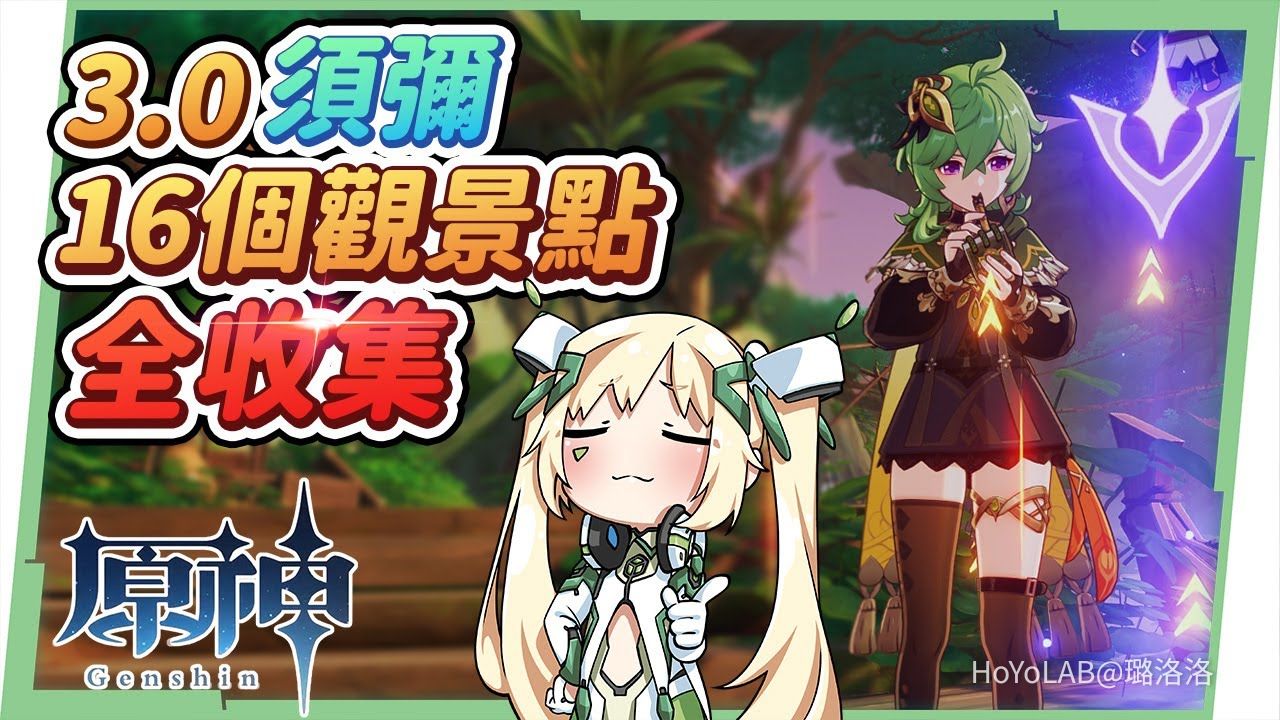 哈囉哈囉! 我是虛擬Youtuber璐洛洛,這次要帶來的是須彌16個觀景點的位置,提供給大家快速蒐集美麗的須彌景點,若你是和洛洛一樣的拍照和風景黨的話,這些景點可不要錯過囉!只要跟著洛洛的路線來蒐集這些觀景點的話,大約只需要花費10分鐘,而也會建議大家要優先完成超長支線森林書,開完大部分的地圖再來解會比較方便哦!那麼話不多說趕快跟著洛洛的路線開跑吧!