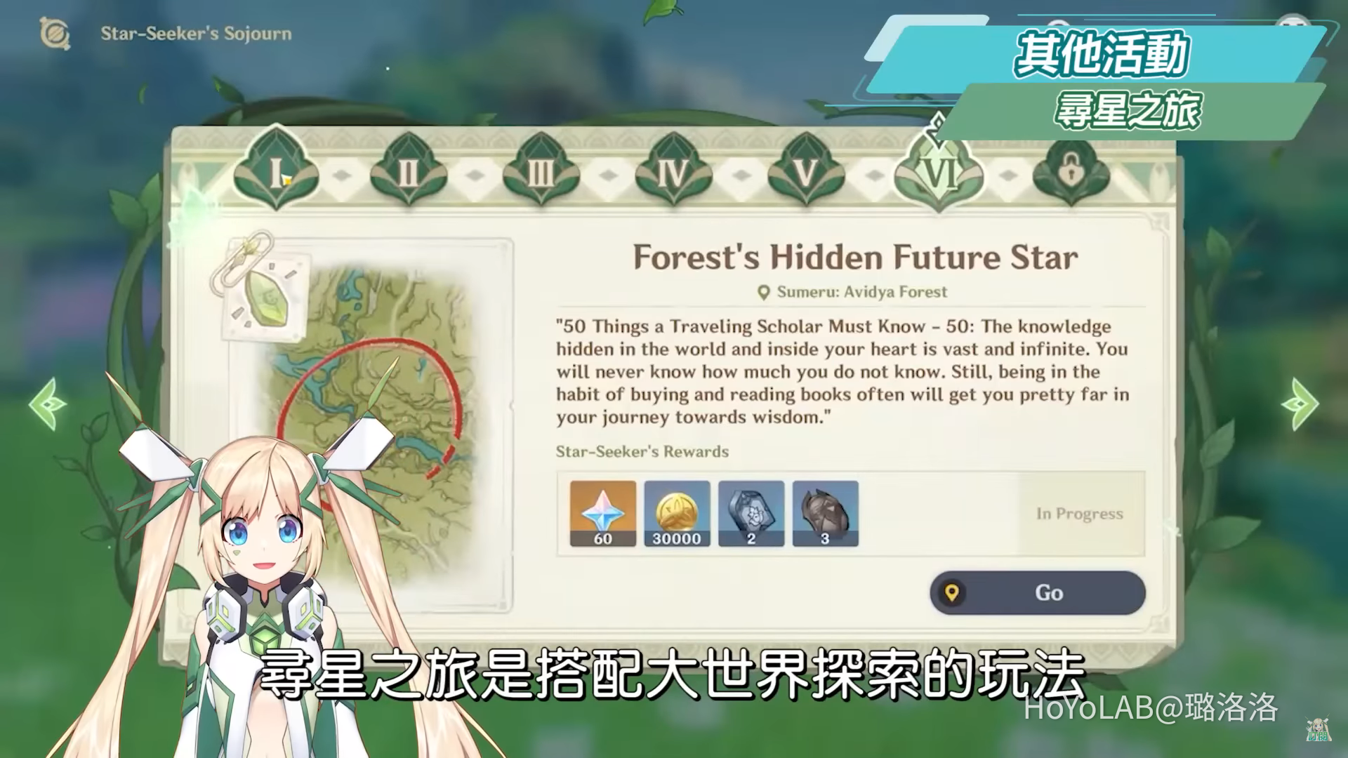 尋星之旅是搭配大世界探索的玩法,透過活動小道具幫助小女孩芭努來找到未來星,中間還須要解開謎題才能獲得獎勵。