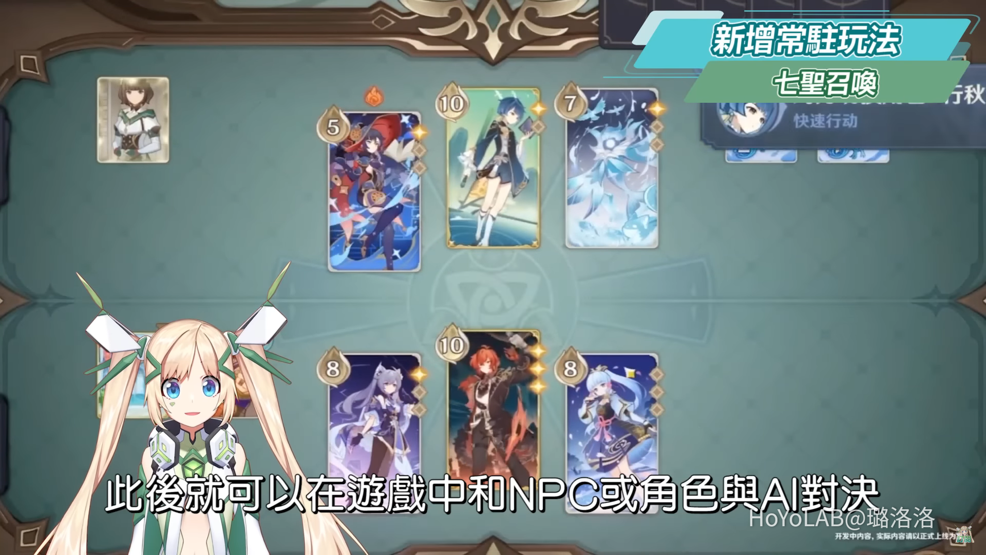 遊戲內將在3.3版本實裝新的常駐玩法「七聖召喚」,內容為類似爐石或百聞牌的策略卡牌PVE對戰,此後就可以在遊戲中和NPC或角色與AI對決,也可以邀請自己的好友沒事就來上一局,這難道就是鍍金旅團閒閒沒事就在打的卡牌嗎?