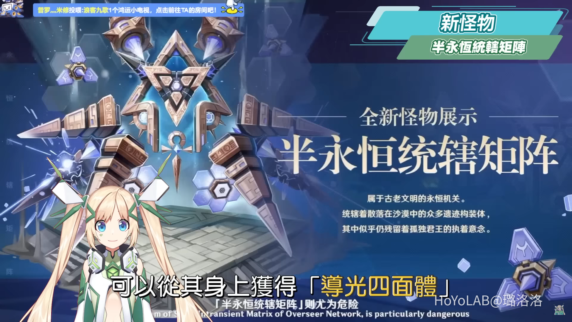 半永恆統轄矩陣為新的野外BOSS,大型的元能構裝體、科技化的恆常機關陣列,可以從其身上獲得「導光四面體」,為坎蒂絲的等級與天賦突破材料。