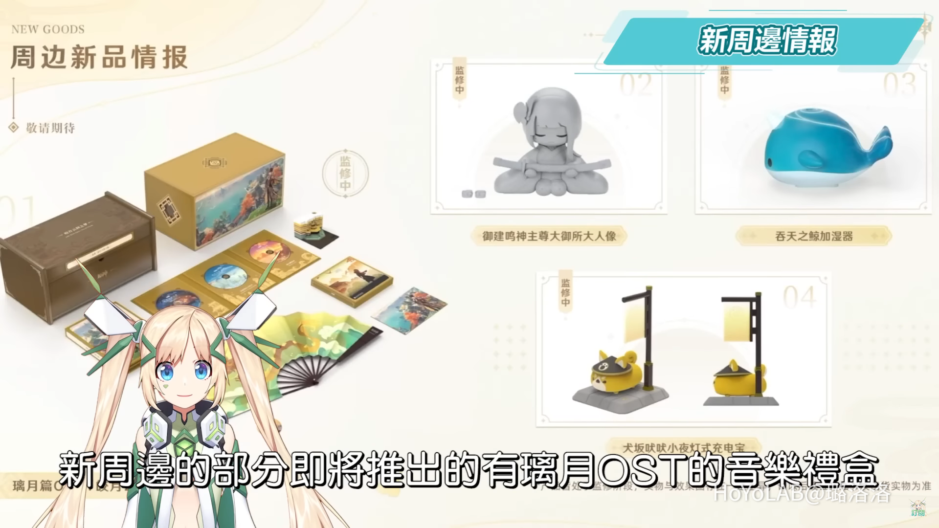 新周邊的部分即將推出的有璃月OST的音樂禮盒,御建鳴神主尊大御所大人像、吞天之鯨加濕器、犬坂吠吠夜燈式行動電源等等,還有超精美的魈寶手辦!以及**本TGS直播節目中有看到更多與Lawson聯名合作推出的周邊,像是這個超好看的萬葉與綾華立牌、史萊姆抱枕跟其他可愛的小物等等,這邊洛洛也跟大家補充一個消息,就是有想要預購或是透過網路購買原神周邊的肉肉,後續洛洛將會與原神旗艦店進行合作,可以直接進貨到原本很難買到的各種周邊,能夠第一手為大家進行預定,同時也包含過去已推出過的周邊和還有現貨庫存的各種商品,有興趣預定的記得隨時追蹤洛洛的社群平台,*期準備好就會上架與開放揪團預購囉!