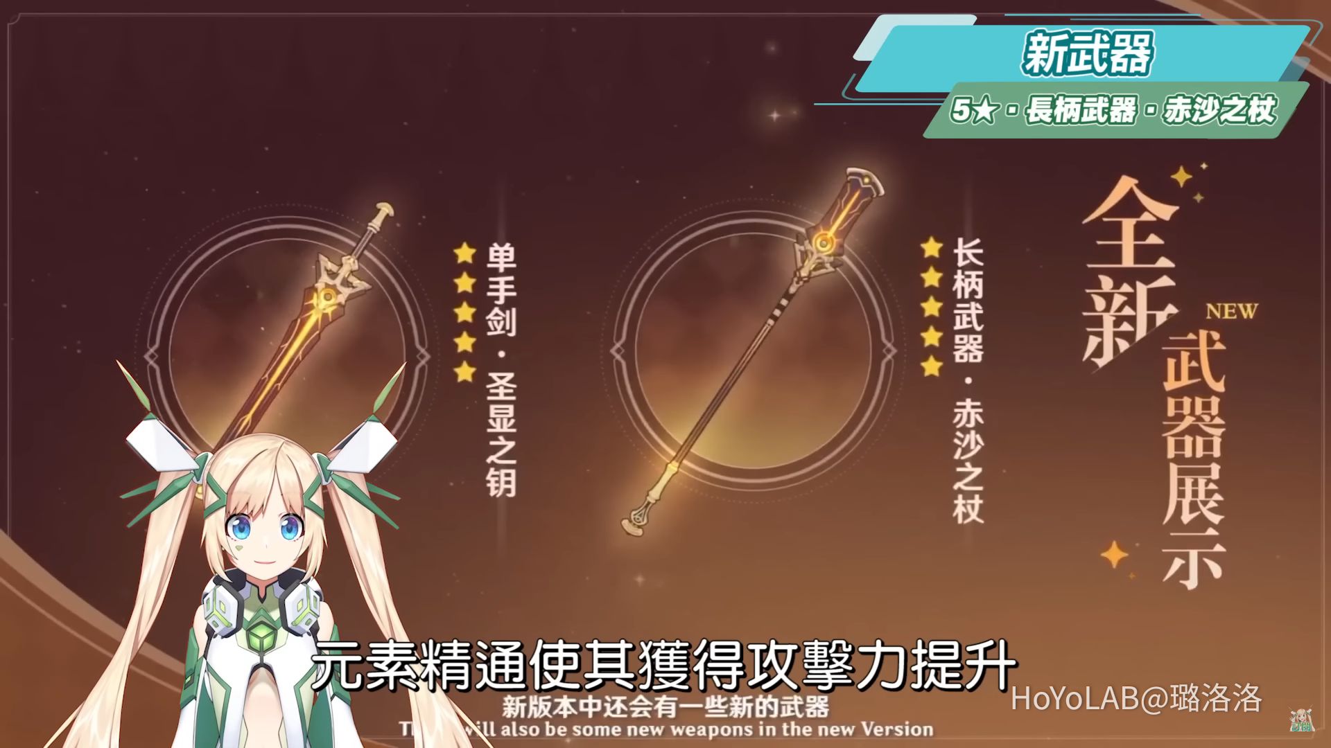 新的五星長柄武器.赤沙之杖,是賽諾的專武,副屬性為暴擊率,被動效果會基於裝備者的元素精通使其獲得攻擊力提升,並在裝備者的元素戰技命中敵人後再基於角色的元素精通再提升攻擊力,最多可以獲得三層攻擊力提升,持續10秒,給賽諾拿就是一個非常傷害炸裂的武器,並且赤沙之杖大概率會和溫迪的專武終末嗟嘆之詩一起同步加入武器卡池中,算是很不錯的武器卡池,歪了也不虧。