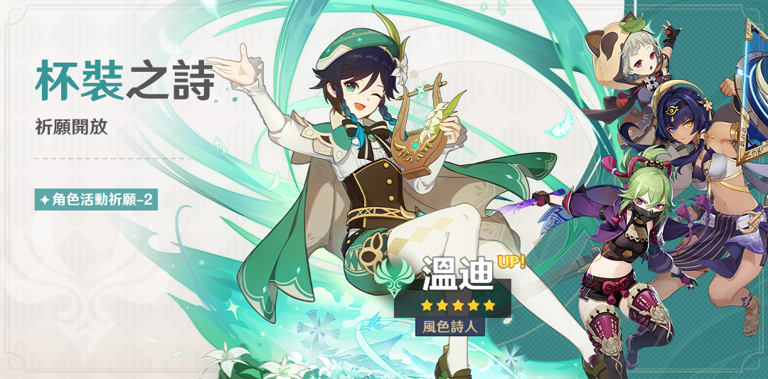 ●活動期間,限定五星角色「風色詩人·溫迪(風)」的祈願抽取機率將大幅提升!
