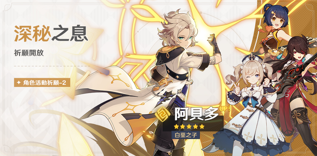 ●活動期間,限定五星角色「白堊之子·阿貝多(岩)」的祈願抽取機率將大幅提升!