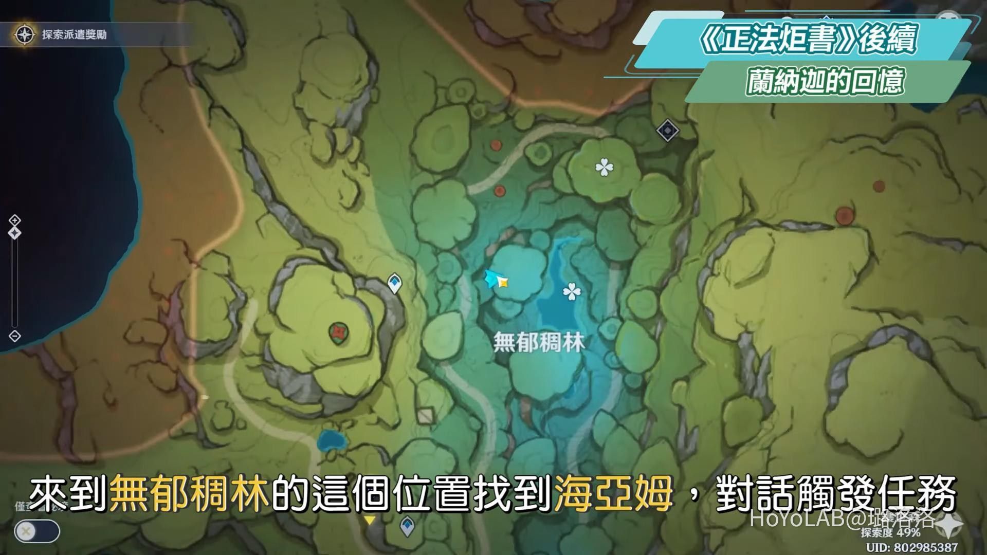 來到無郁稠林的這個位置找到海亞姆,對話觸發任務。