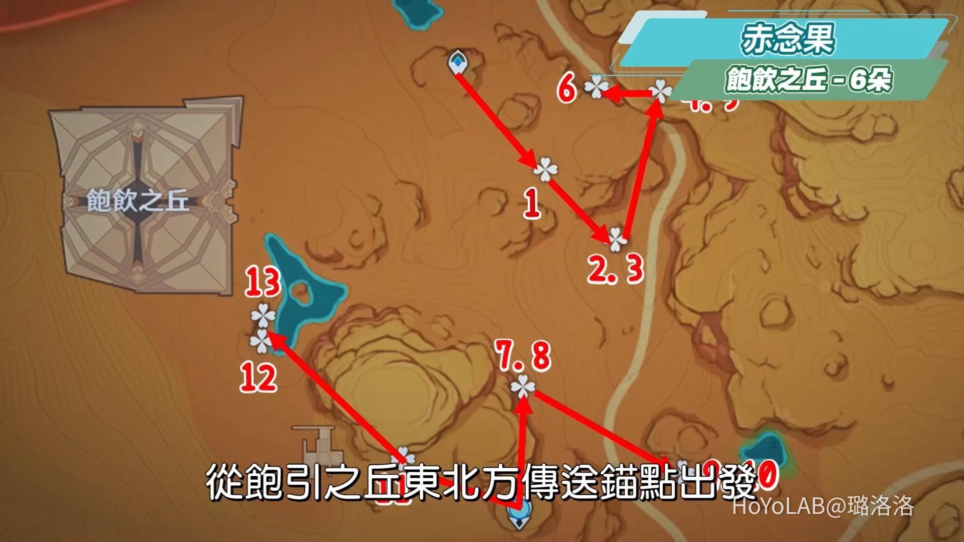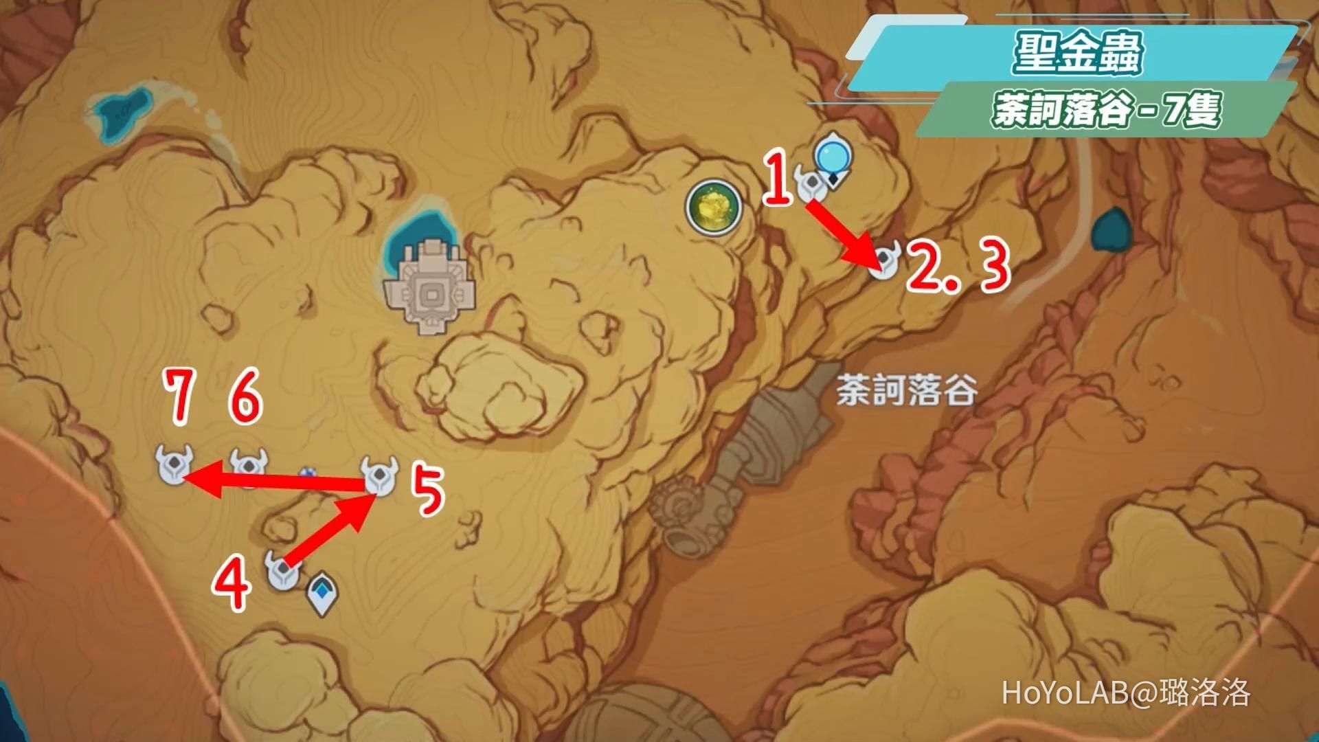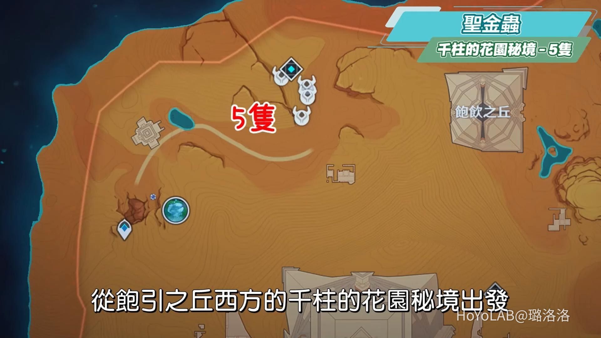 這次要帶來的是賽諾與坎蒂絲所需要的突破素材效率路線,這兩個須彌特產分別是「聖金蟲」與「赤念果」,一個是在沙漠上推沙子的可愛蟲蟲,以及在仙人掌上可以摘到的火龍果,話說人物還可以爬在仙人掌上毫髮無傷也太違和了,影片中將會帶來最能快速採集到最多素材的路線,大家可以跟著影片跑過後,再去自己的朋友家拿,這樣很快就可以快速將自己的角色突破到滿等了,而沙漠中有些路線是需要解俗稱沙漠書的「赤砂石板」才能進入,影片中的聖金蟲主要以地面為主的路線,地底下的比較麻煩且過於分散,因此如果還沒有解「黃金夢鄉」的沙漠書任務的話,可以先以地面的聖金蟲路線為主,那事不宜遲接下來就開始跟著洛洛的影片開跑吧!