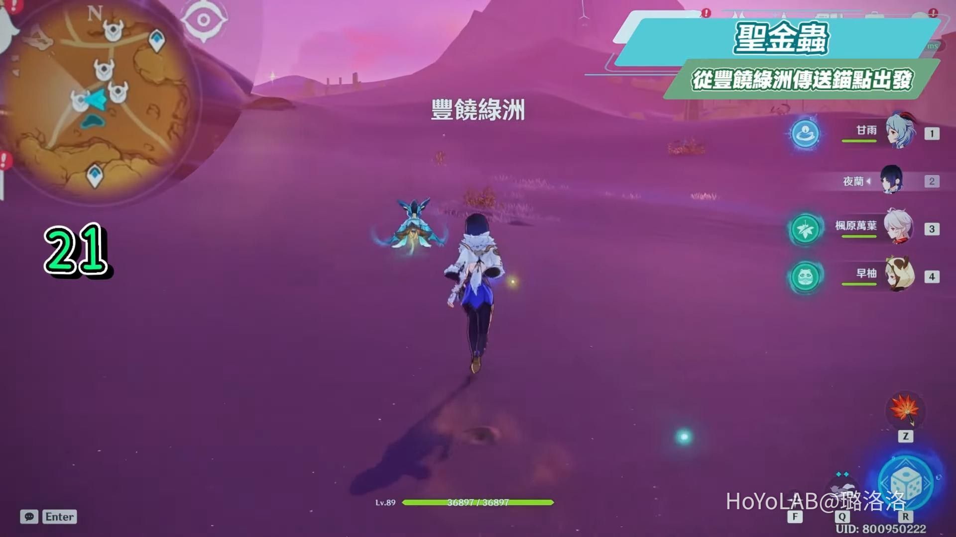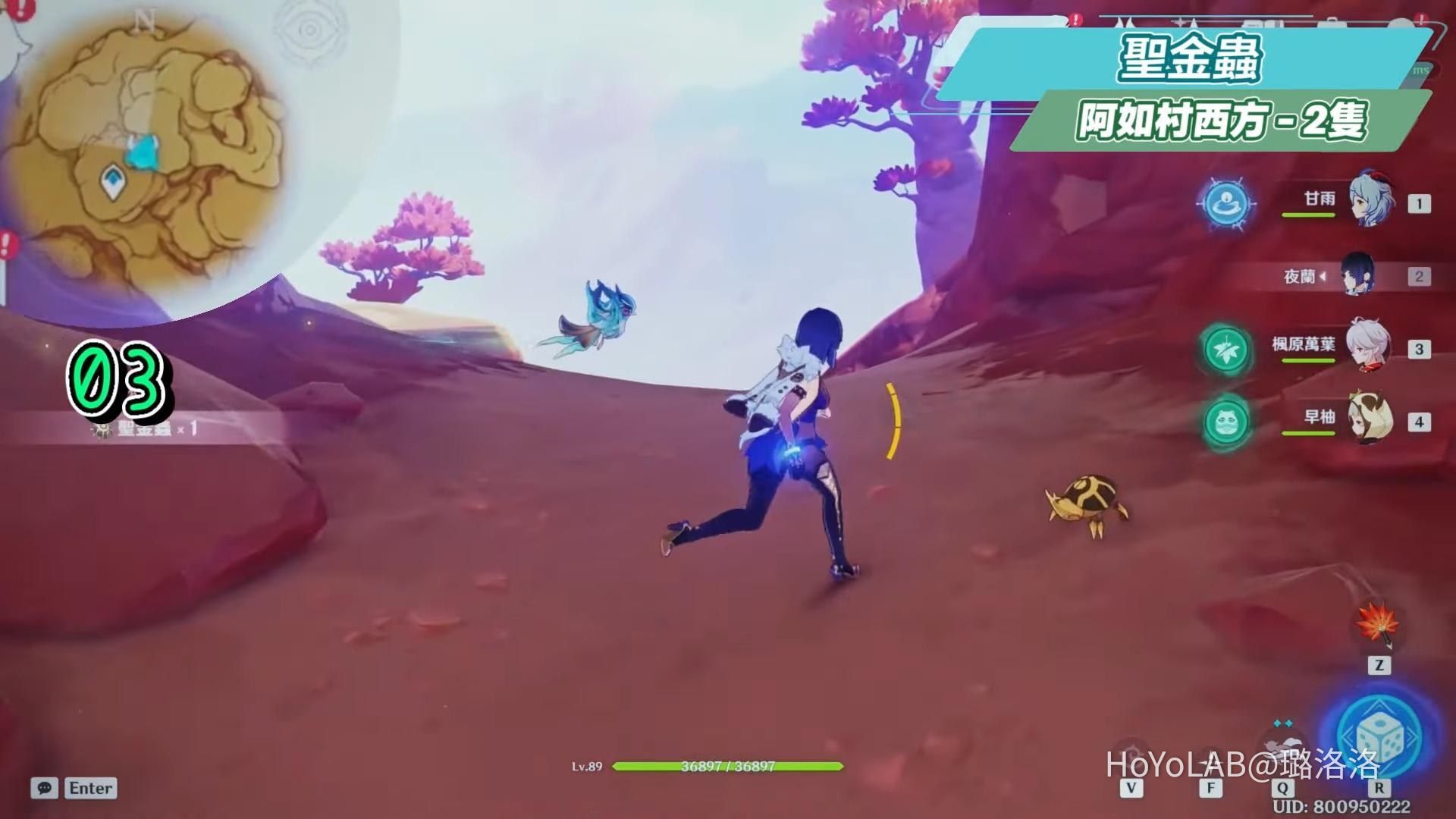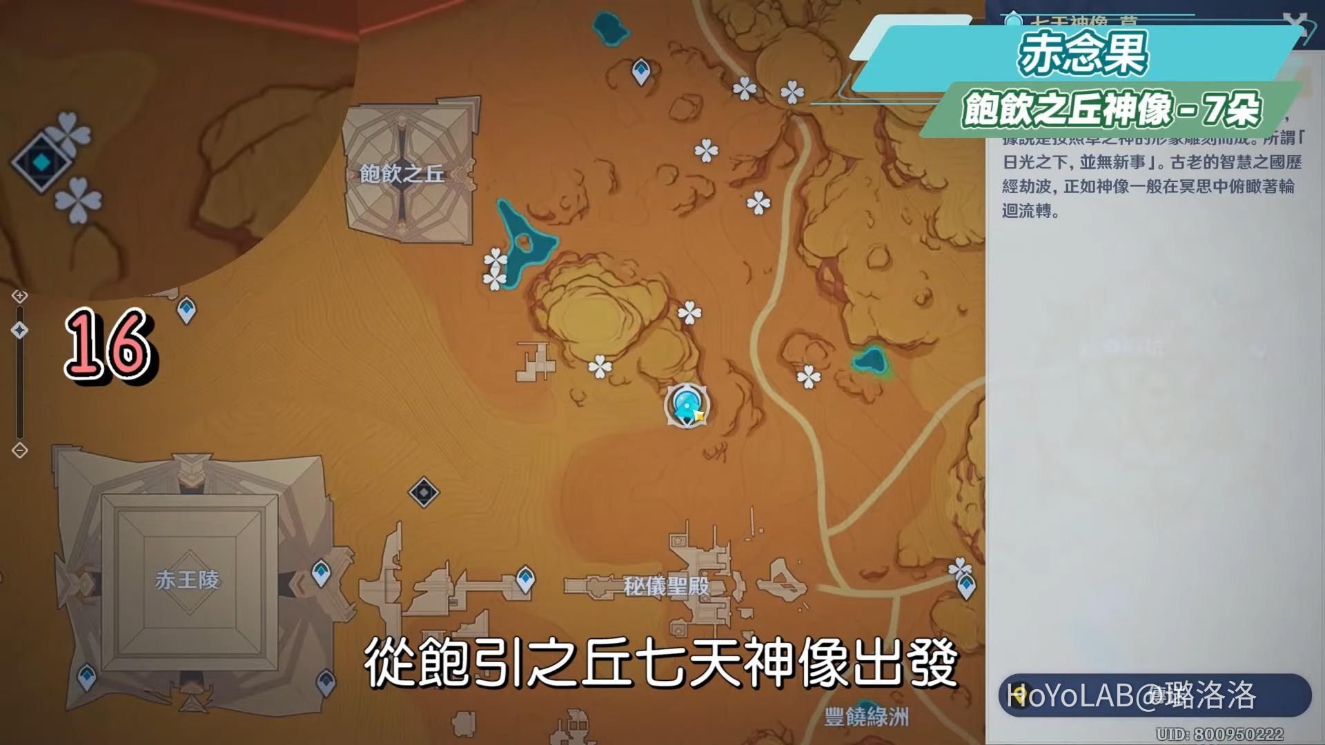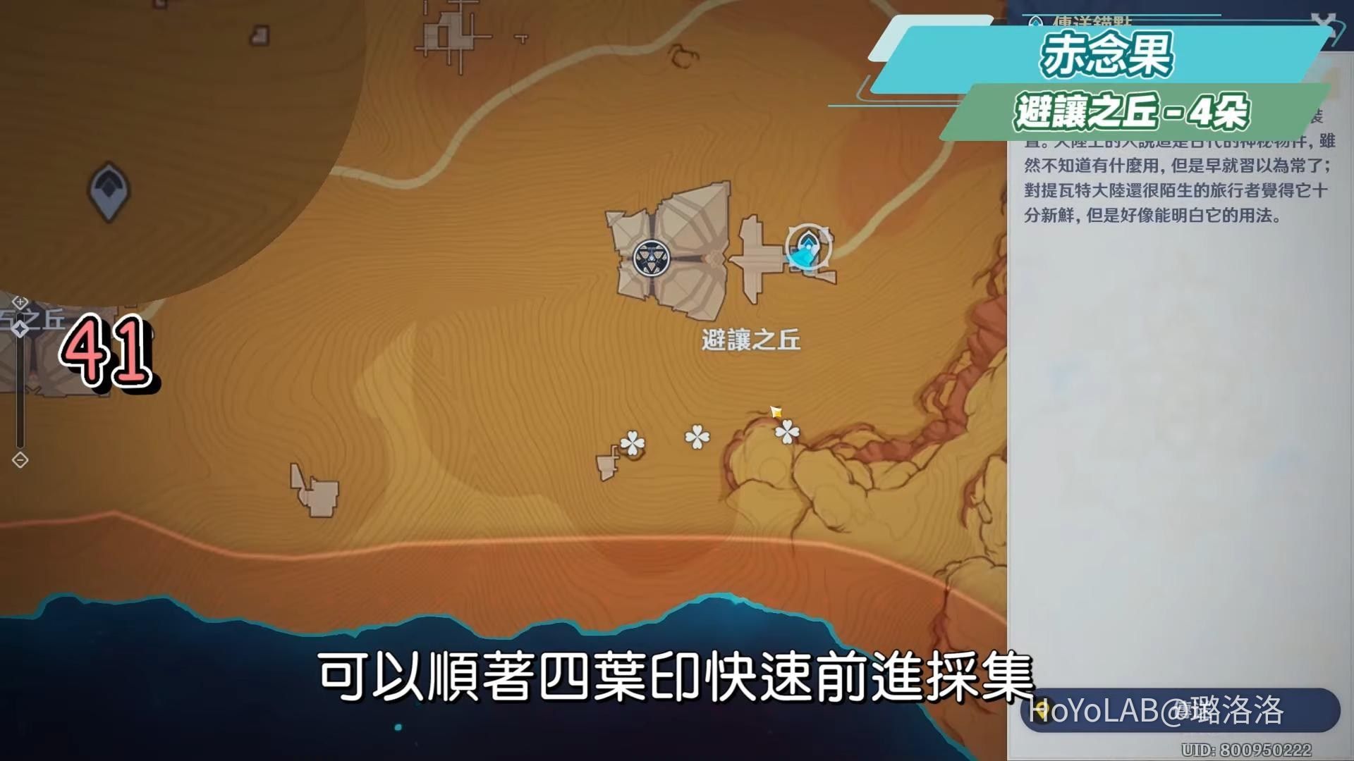 這次要帶來的是賽諾與坎蒂絲所需要的突破素材效率路線,這兩個須彌特產分別是「聖金蟲」與「赤念果」,一個是在沙漠上推沙子的可愛蟲蟲,以及在仙人掌上可以摘到的火龍果,話說人物還可以爬在仙人掌上毫髮無傷也太違和了,影片中將會帶來最能快速採集到最多素材的路線,大家可以跟著影片跑過後,再去自己的朋友家拿,這樣很快就可以快速將自己的角色突破到滿等了,而沙漠中有些路線是需要解俗稱沙漠書的「赤砂石板」才能進入,影片中的聖金蟲主要以地面為主的路線,地底下的比較麻煩且過於分散,因此如果還沒有解「黃金夢鄉」的沙漠書任務的話,可以先以地面的聖金蟲路線為主,那事不宜遲接下來就開始跟著洛洛的影片開跑吧!