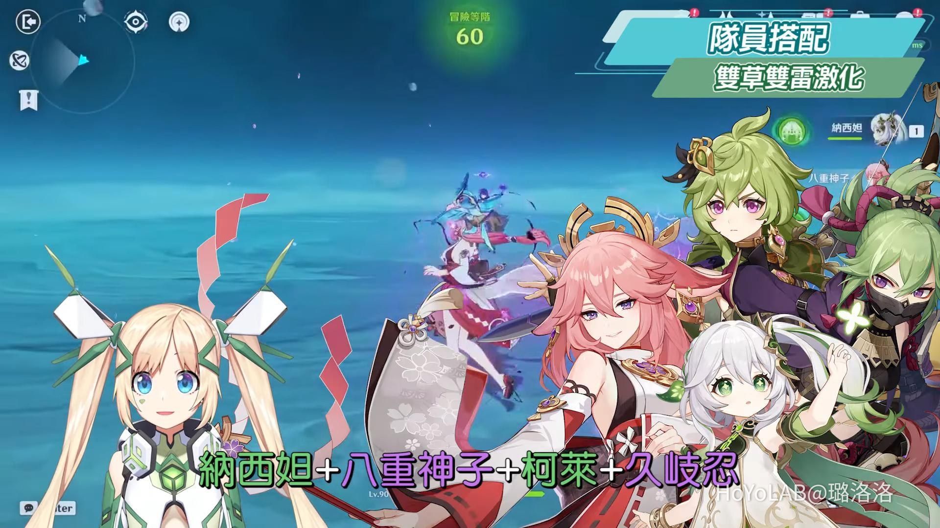 以賽諾站場的輸出陣容,搭配久岐忍、夜蘭與納西妲也可以玩激化+綻放的激綻隊,並且納西妲的大招在雙雷角色的效果下可以使戰技間隔縮到最短,再搭配水和雷元素高頻率的反應之下也會再與草元素產生綻放反應,形成一連串的激化加超綻放連鎖Combo,進而提升總體輸出傷害量。