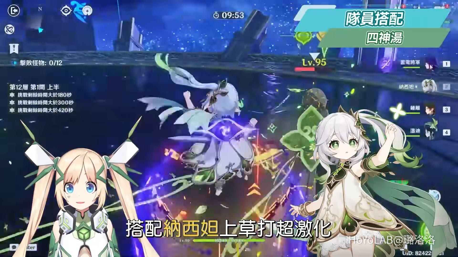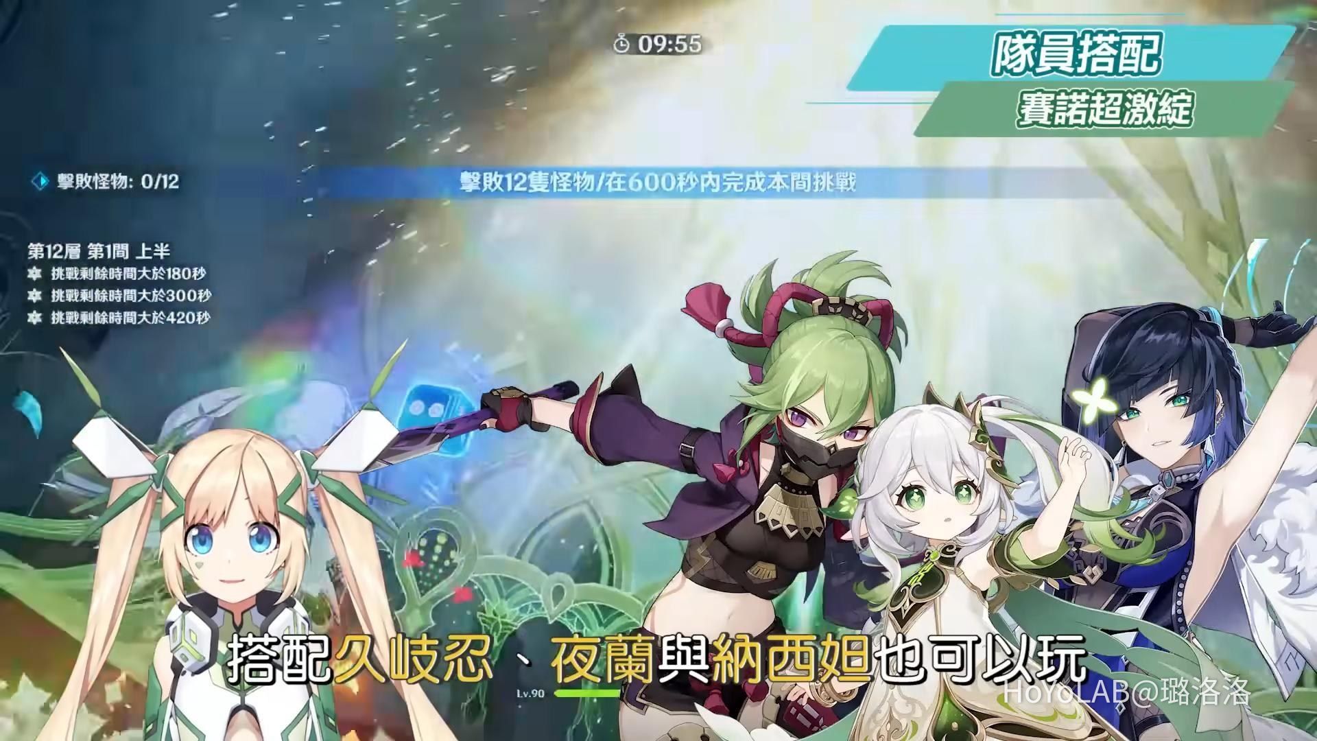 超綻放隊可以讓納***任後台掛草角色,再搭配行秋或夜蘭的後台掛水角色,以及後台掛雷兼任奶**久岐忍,站場角色可以選擇的有很多,像是綾人、鹿野院平藏、砂糖、心海等,納西妲也可看情況轉為站場,而打超綻放的久岐忍要注意元素精通和角色等級要越高越好。