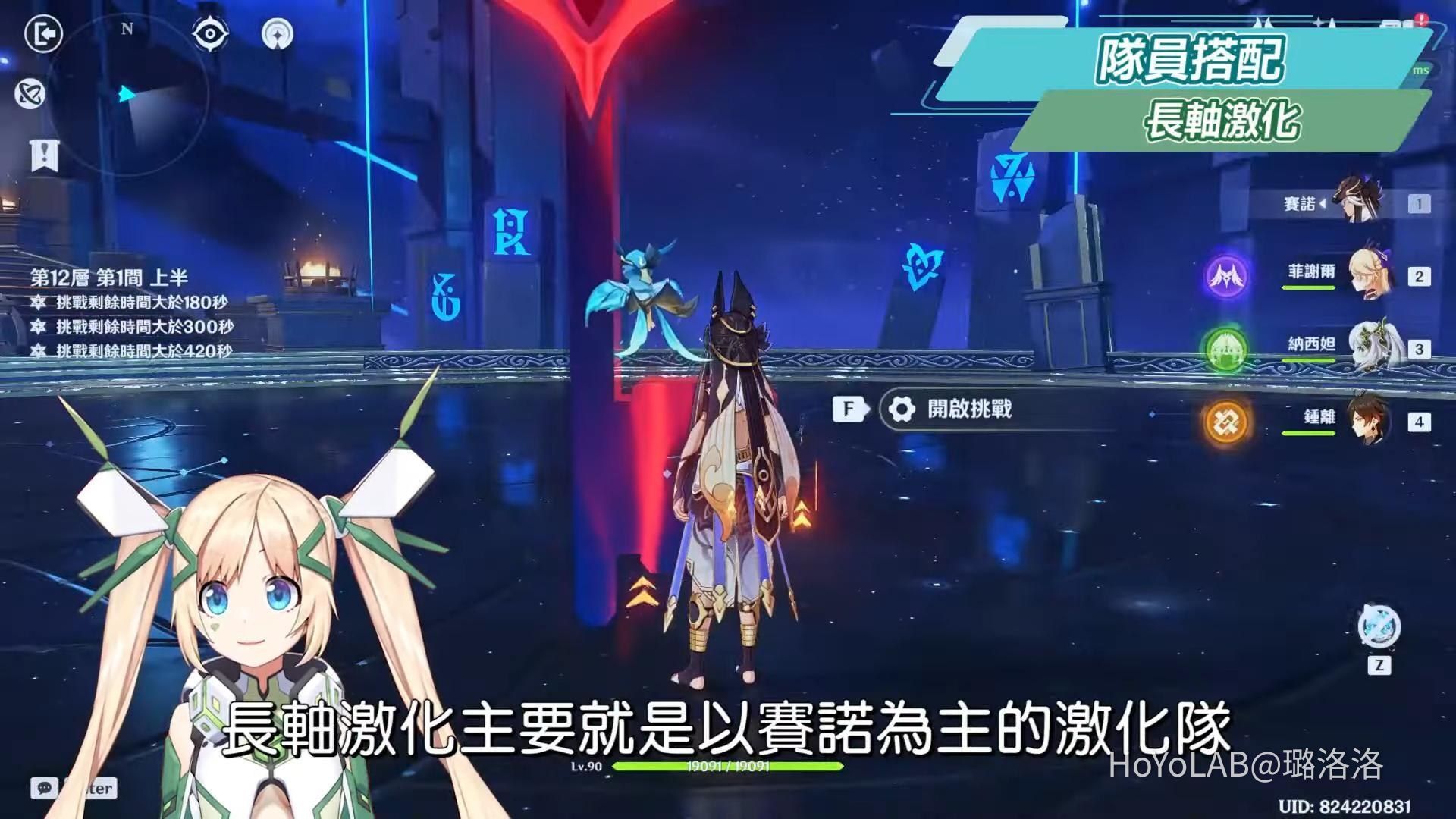 長軸激化主要就是以賽諾為主的激化隊,可以參考先前的賽諾影片中的隊伍配置,將草主的部分轉為納西妲,納西妲的E技能可以提供25秒的掛草時長,給長軸的賽諾打滿開大後的18秒綽綽有餘。