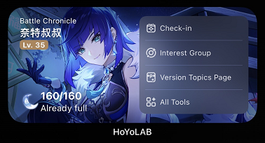 透過新增桌面小工具,旅行者們可以隨時在手機上查看剩餘的原粹樹脂數量並快速開啟《原神》工具。小工具有大和小兩種尺寸:
