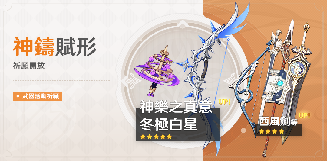 「神鑄賦形」祈願:「法器·神樂之真意」、「弓·冬極白星」機率UP!