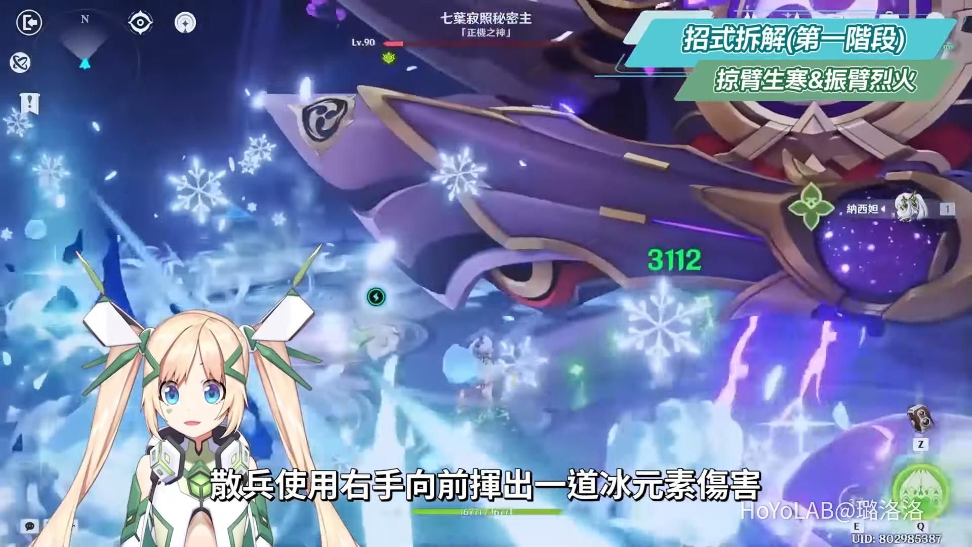 平民實戰的部分這邊帶的是凝光的雙火雙岩陣容,煙緋主要用來破第二階段的4個小機關,開場BOSS先使出風生水起可以貼身靠近輸出,並在水龍捲快結束時從縫隙鑽出去準備蒐集2個小能量塊,再迅速靠近雷元素矩陣癱瘓BOSS,並一邊閃避一邊蒐集2個能量塊,準備在第5波攻擊結束後觸發第2個雷元素矩陣,獲得20秒的癱瘓輸出時間,並再蒐集2個能量塊以備後面使用,而後如果看到在蓄力準備使出激能雷束時再去觸發風元素矩陣上升來躲過全場攻擊,運氣好都沒有觸發冰火相關的技能時就可以很容易無傷到下一階段。