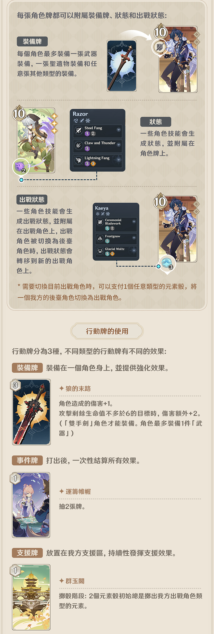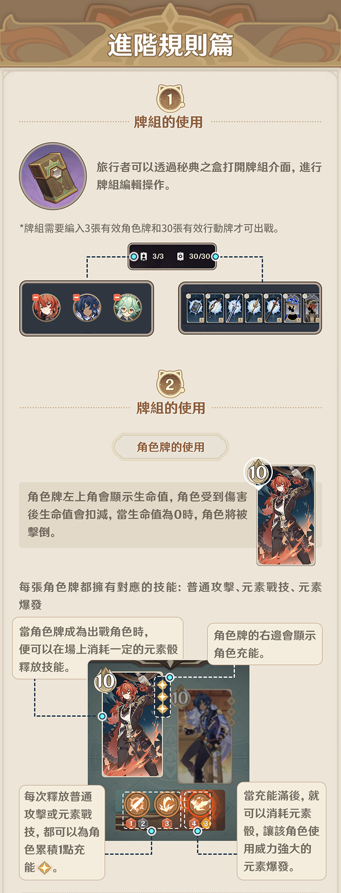 【牌組的使用】:角色牌的使用,行動牌的使用