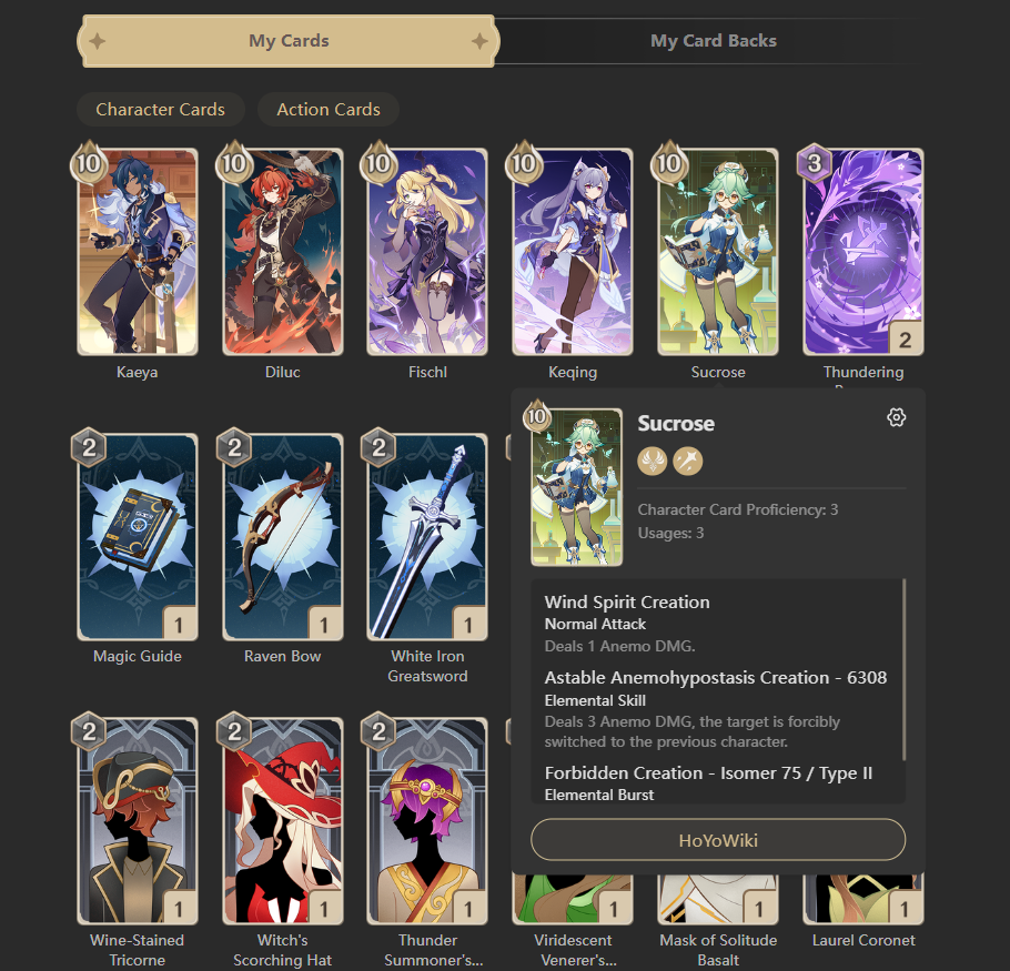 新增七聖召喚個人卡牌及卡牌詳情查詢功能。