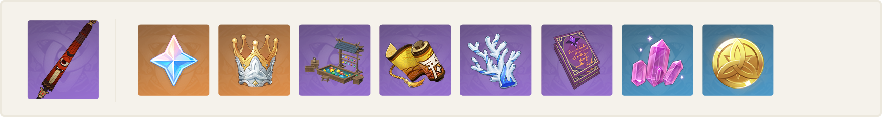 ● 完成「閒暢遊藝」和「破邪遊藝」中的指定任務,即可獲得原石、活動專屬武器「單手劍·東花坊時雨」、「試膽會的票券」、大英雄的經驗、精鍛用魔礦和摩拉獎勵,「試膽會的票券」可在活動商店中兌換「若狹的藁末」、智識之冕、武器突破素材、天賦培養素材等獎勵。