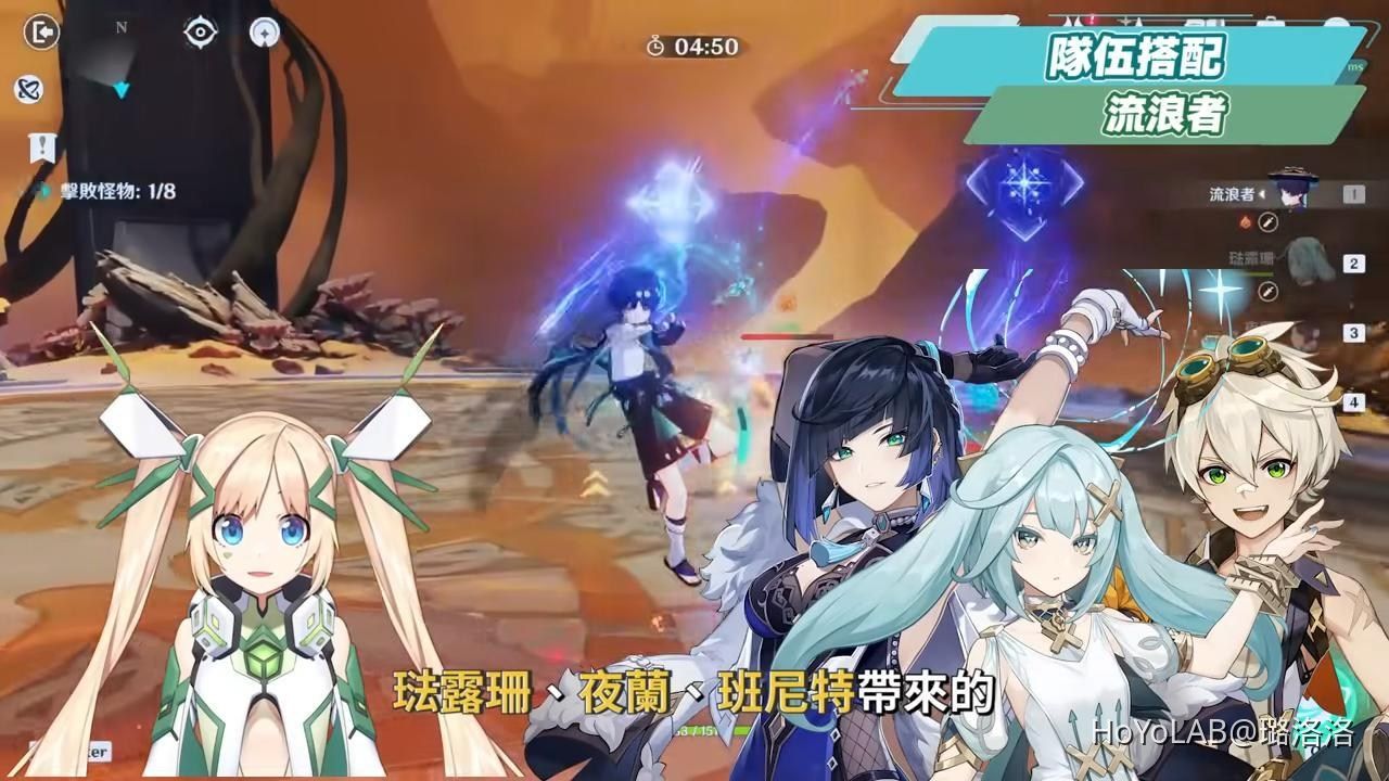 流浪者的組隊這邊主要示範雙風的組法,還有其他組隊可以參考先前製作過的流浪者影片,流浪者主要靠琺露珊、夜蘭、班尼特帶來的三重增傷輕易打出可觀的傷害,並且也可以吃到水與火的BUFF。