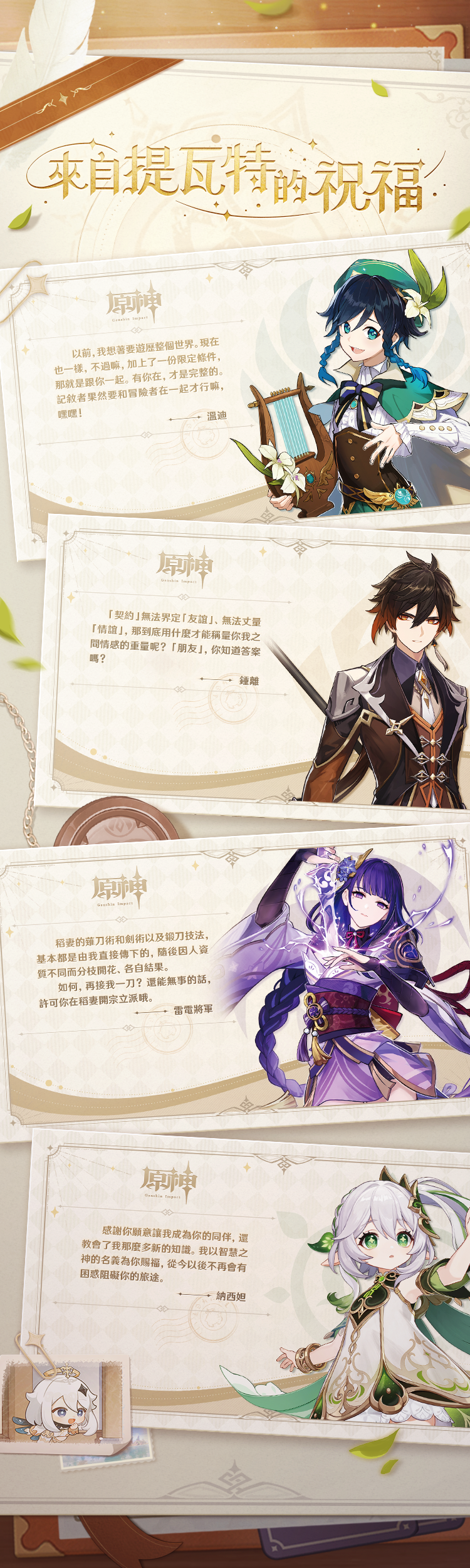 感謝你這一年的努力和付出,和你在一起的每一個美好瞬間即為旅行的意義。請你收下這份來自提瓦特的祝福,和派蒙一起,繼續展開新的冒險吧!