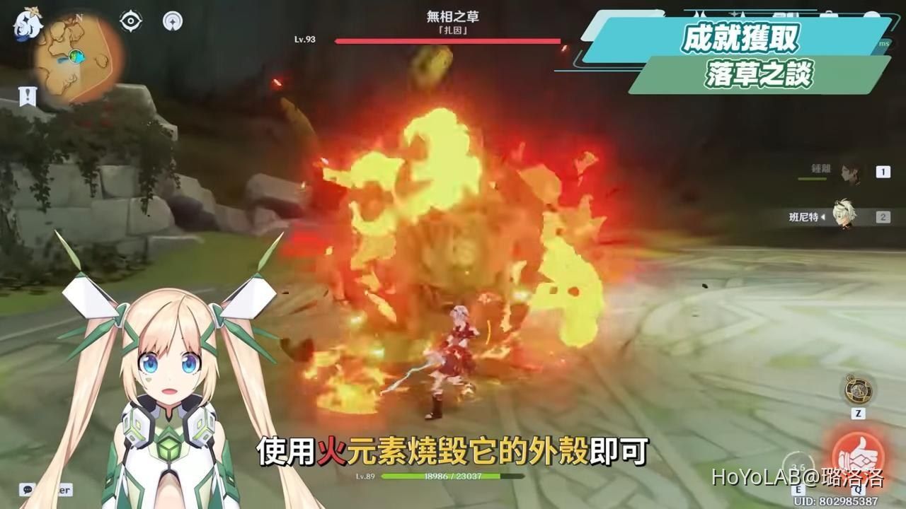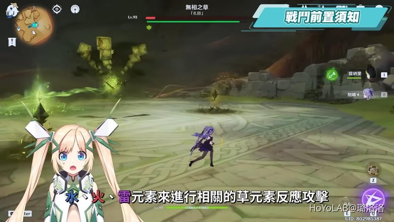 接下來帶來相關的實戰演示,由於除了草元素以外的傷害都可以對無相之草造成傷害,因此就帶來水、火、雷的角色輸出的相關片段,只要最後用草元素快速淨化草芯即可。
