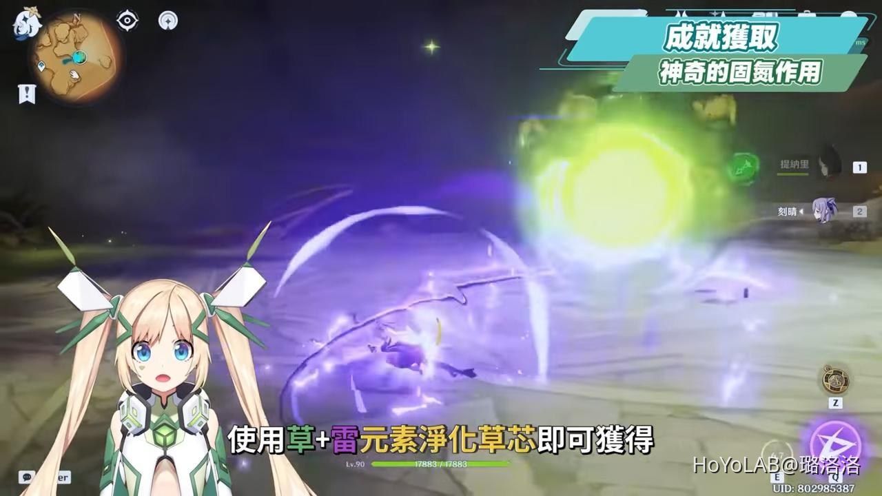 最後分享兩個關於無相之草的隱藏成就,第一個《神奇的固氮作用》很簡單,只要在BOSS最後的瀕死反擊狀態時,使用草+雷元素淨化草芯即可獲得。