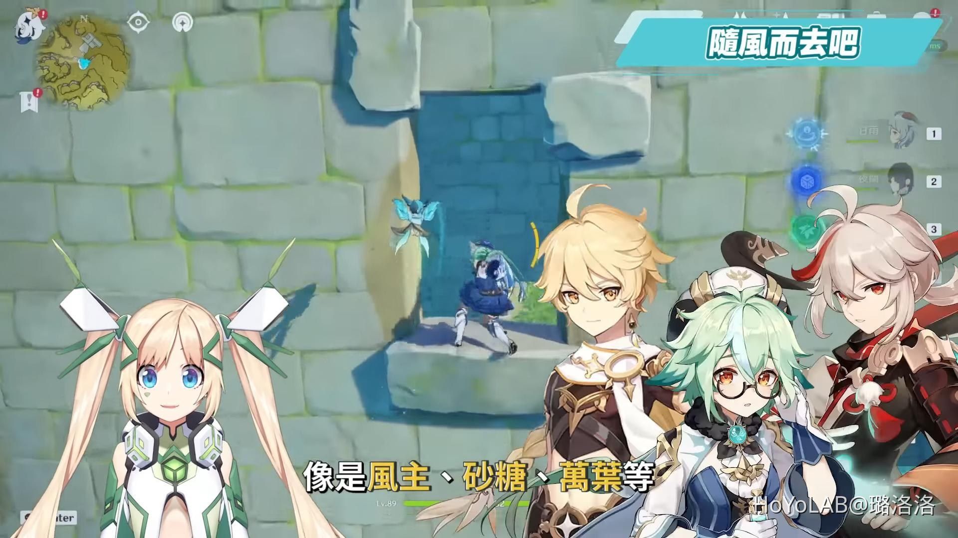 「隨風而去吧」的達成條件是需要在2秒內,觸發冰水火雷元素四種擴散反應,這邊推薦的角色為具有範圍的風元素角色,像是風主、砂糖、萬葉等,接著可以來到層岩巨淵區域,從採樵谷的傳送錨點出發,來到位於東北方的建築物,進入到建築物裡面後就會從上落下4種元素的史萊姆,接著再使用角色的風元素範圍技能一次擴散4種元素,若要重複刷取可以把裝備脫掉,在史萊姆血量快耗盡的時候先遠離,讓史萊姆回血後再回來刷取。