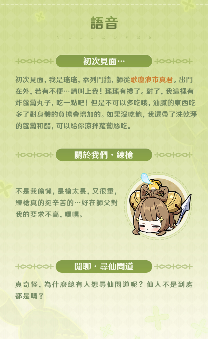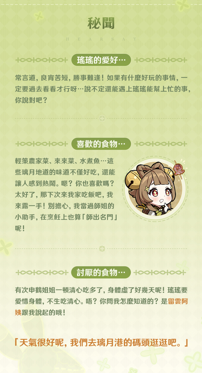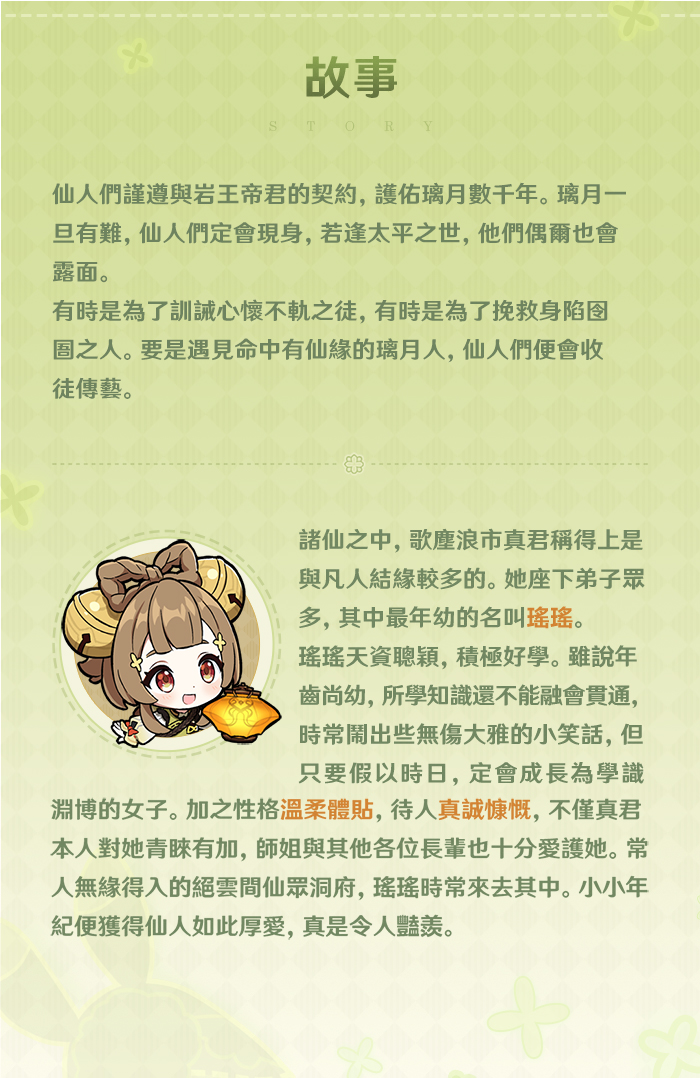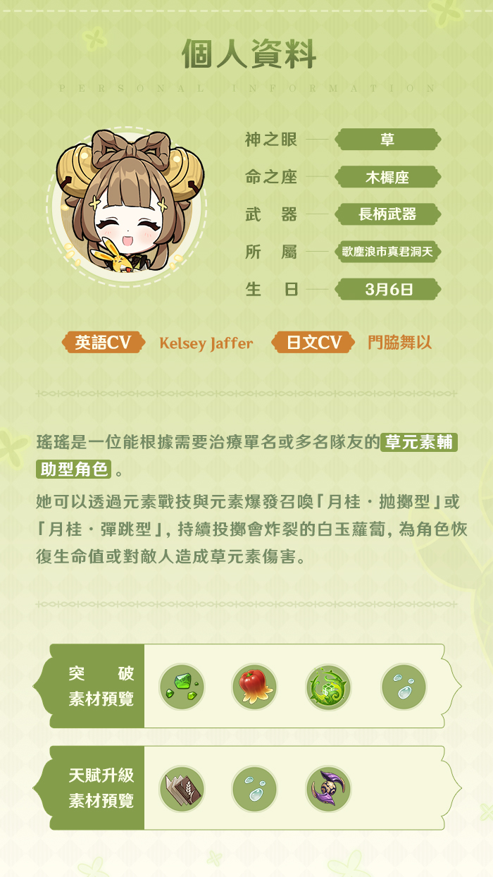 旅行者們好呀!今天為大家介紹的角色是瑤瑤。