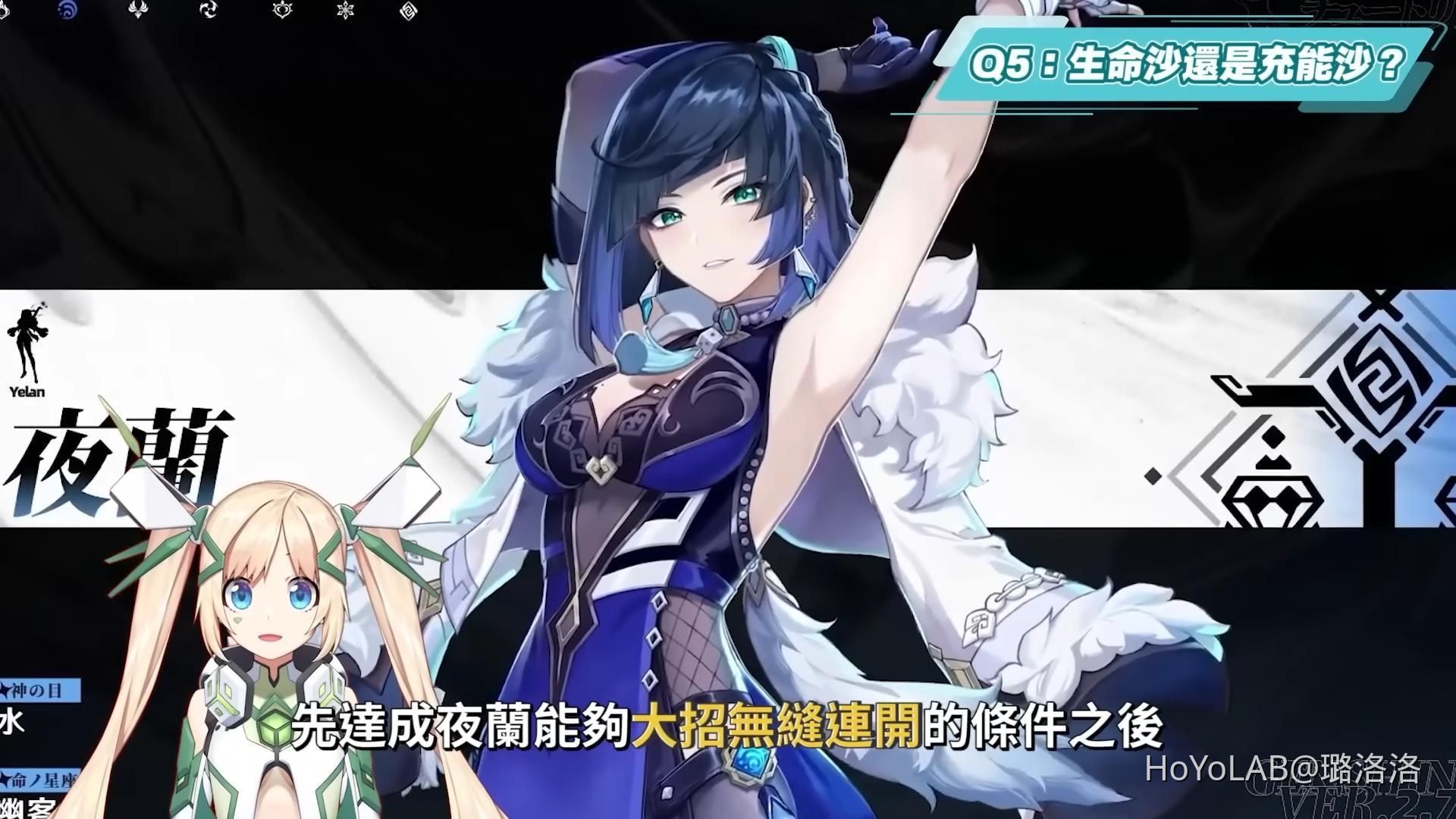 再來是補充關於夜蘭在草元素登場後的其他新隊伍,一些經典的夜蘭配隊,像是雷夜國家隊、純水泳裝隊、蒸發隊等等都可以參考先前夜蘭影片的16:52開始的地方。