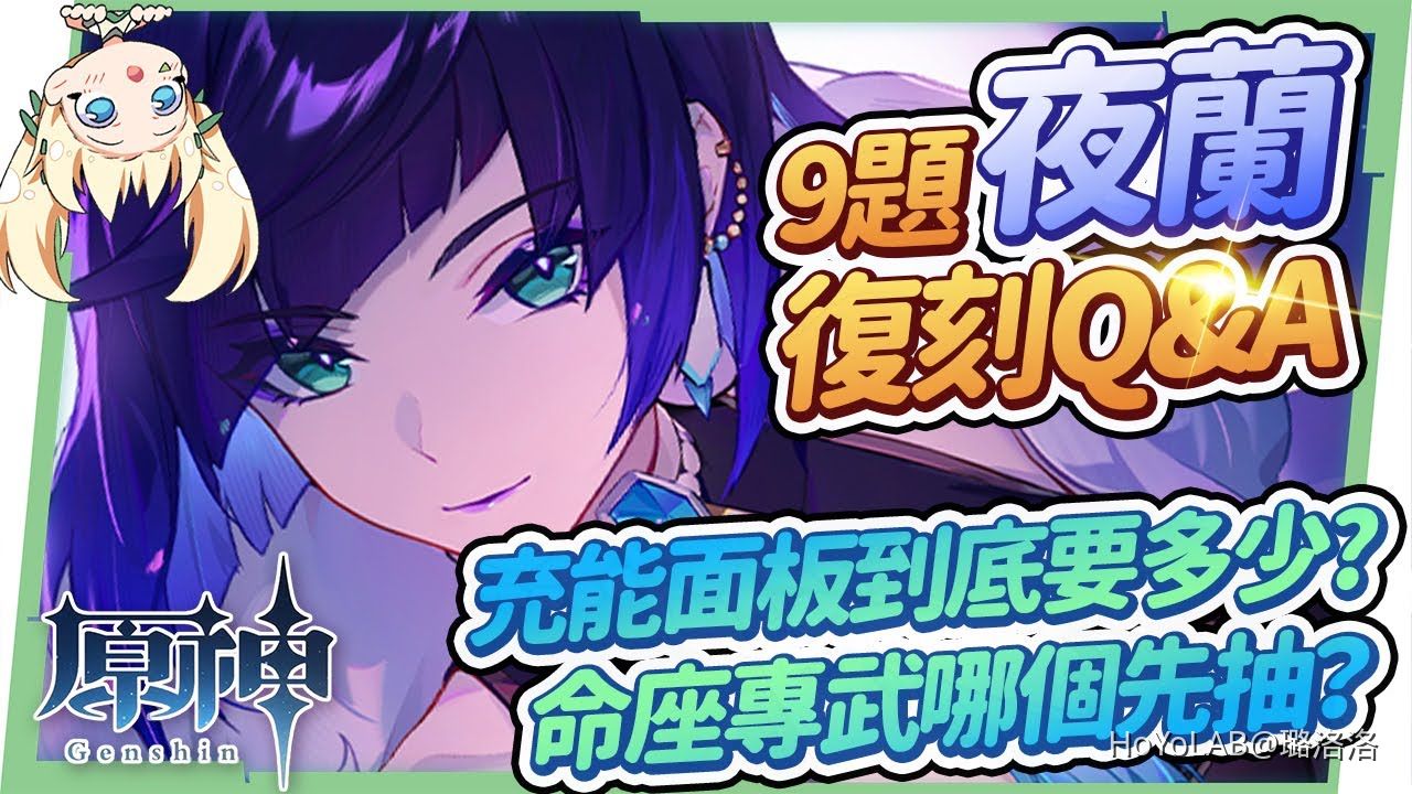 夜蘭這名T0角色終於在3.4版本下半卡池強勢回歸,以前面早抽早享受的玩家來說,想必都已經體驗到蘭姊的強大,而現在夜蘭復刻的版本已經加入了草元素,甚至雙水共鳴在改版之後,蘭姊都可以說是如同得到BUFF的提升,洛洛也會在稍後影片中分享一些夜蘭搭配草元素的隊伍,因此夜蘭到現今版本而言,可以說是在組隊方面變得更加靈活,但也需要提醒新手們,夜蘭在命座與專武的優先度上會有其背後考量的原因,因此還不知道該怎麼抽的話,也可以參考洛洛接下來的建議,那如果不曉得該如何培養夜蘭的話,也可以點擊右上方資訊卡查看先前製作過的夜蘭培養全分析,洛洛也募集了在Instagram限時動態上一些常見的Q&A,幫助你更好的了解夜蘭這名角色哦!