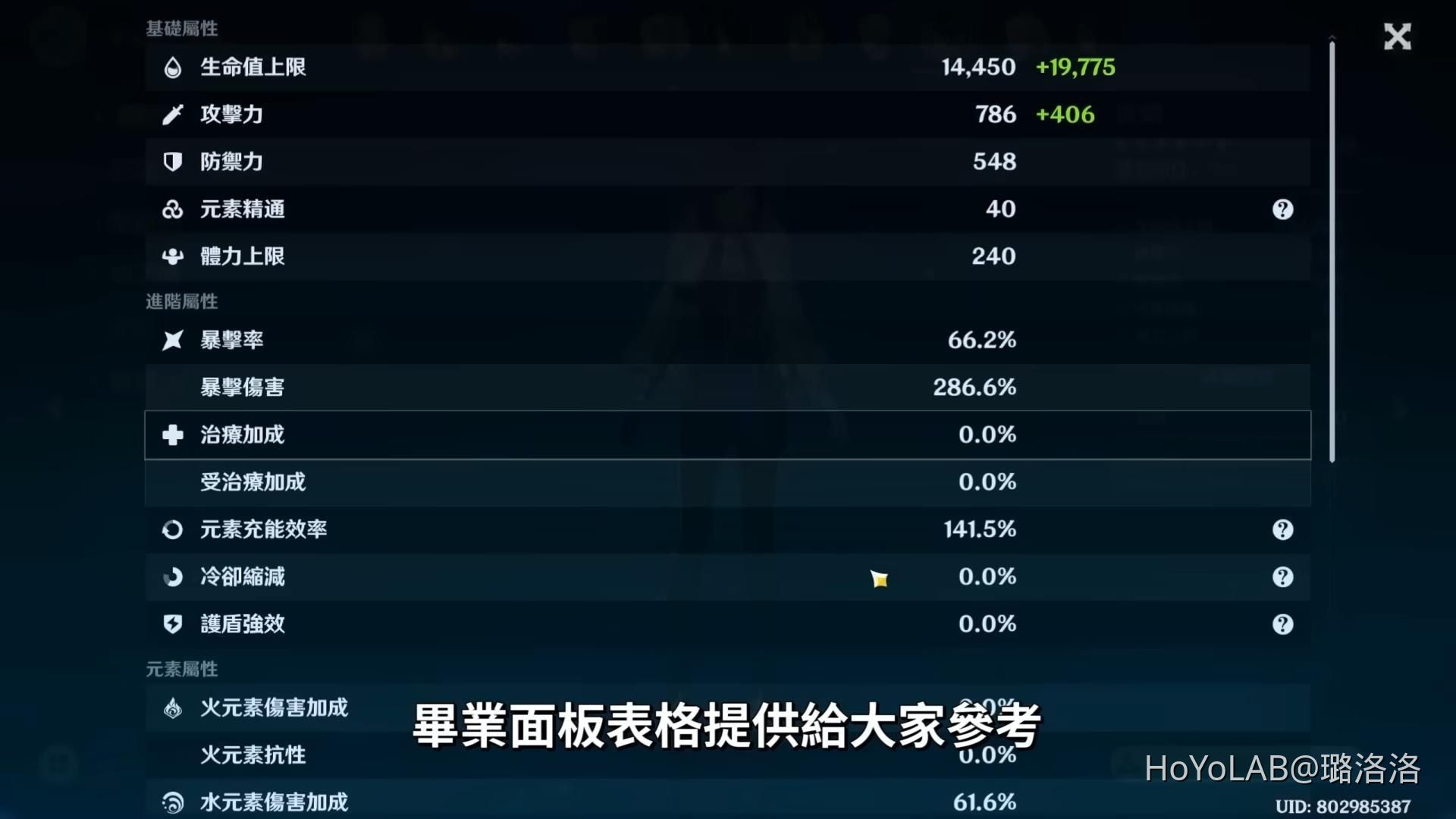 以及附上洛洛的滿命夜蘭面板給大家參考: