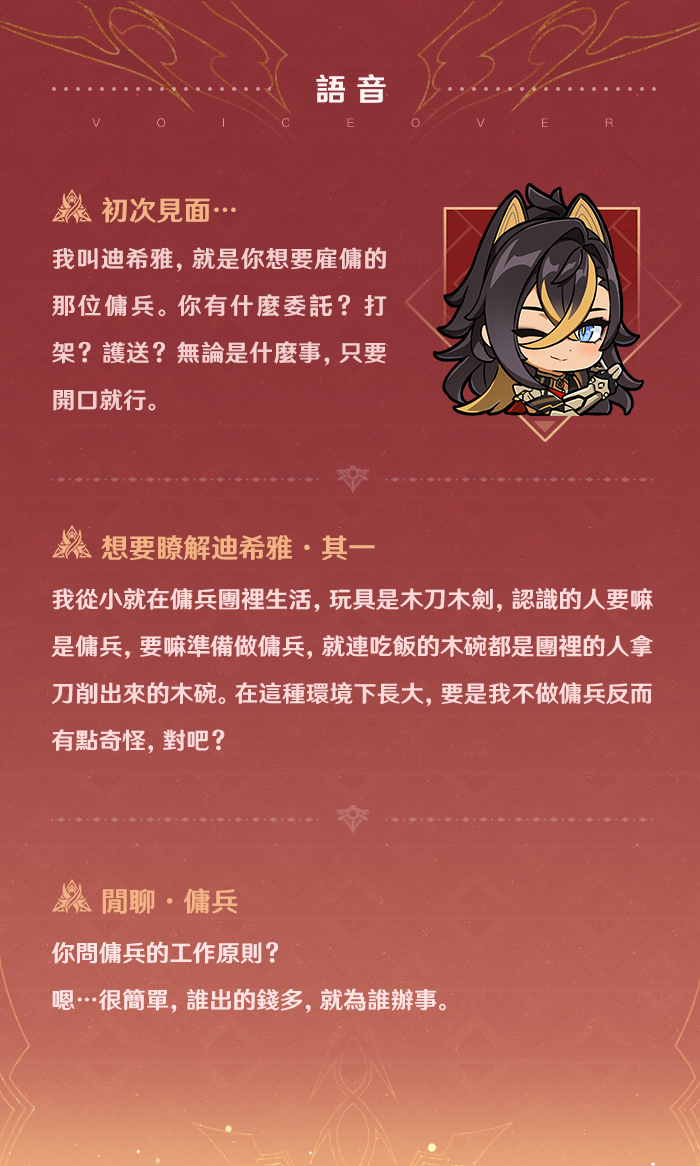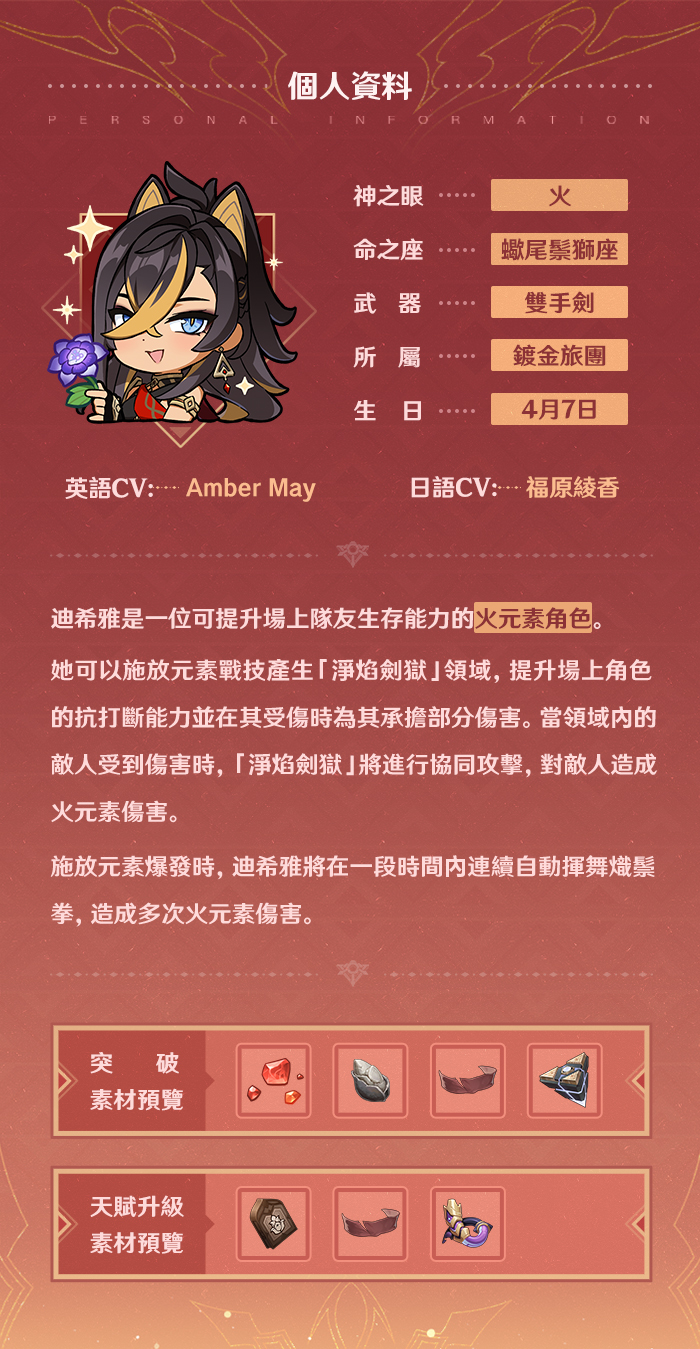 旅行者們好呀!今天為大家介紹的角色是「鍍金旅團」的成員——迪希雅。