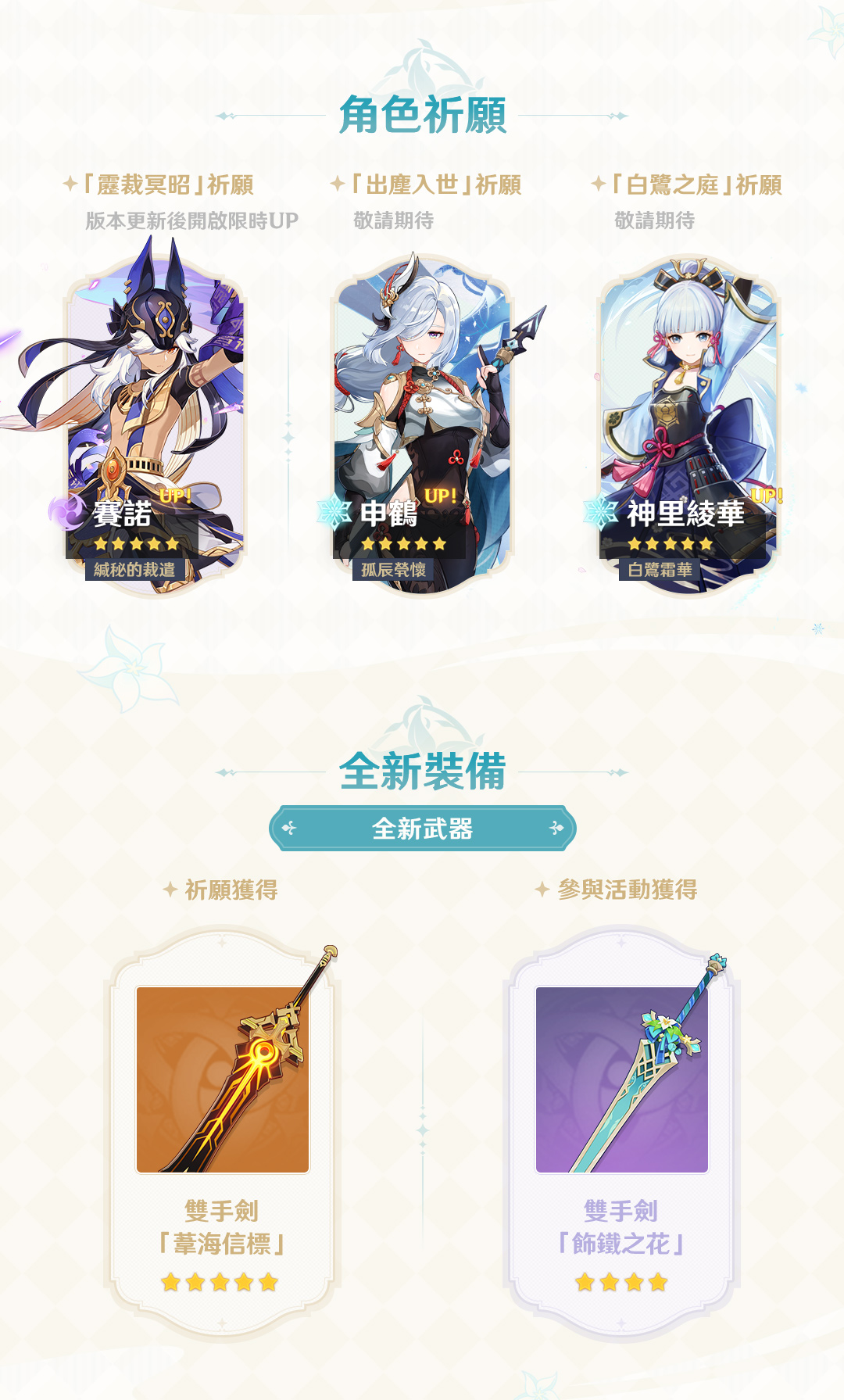 開發團隊將於近期進行版本更新維護,維護期間無法登入遊戲。請旅行者留意遊戲時間。