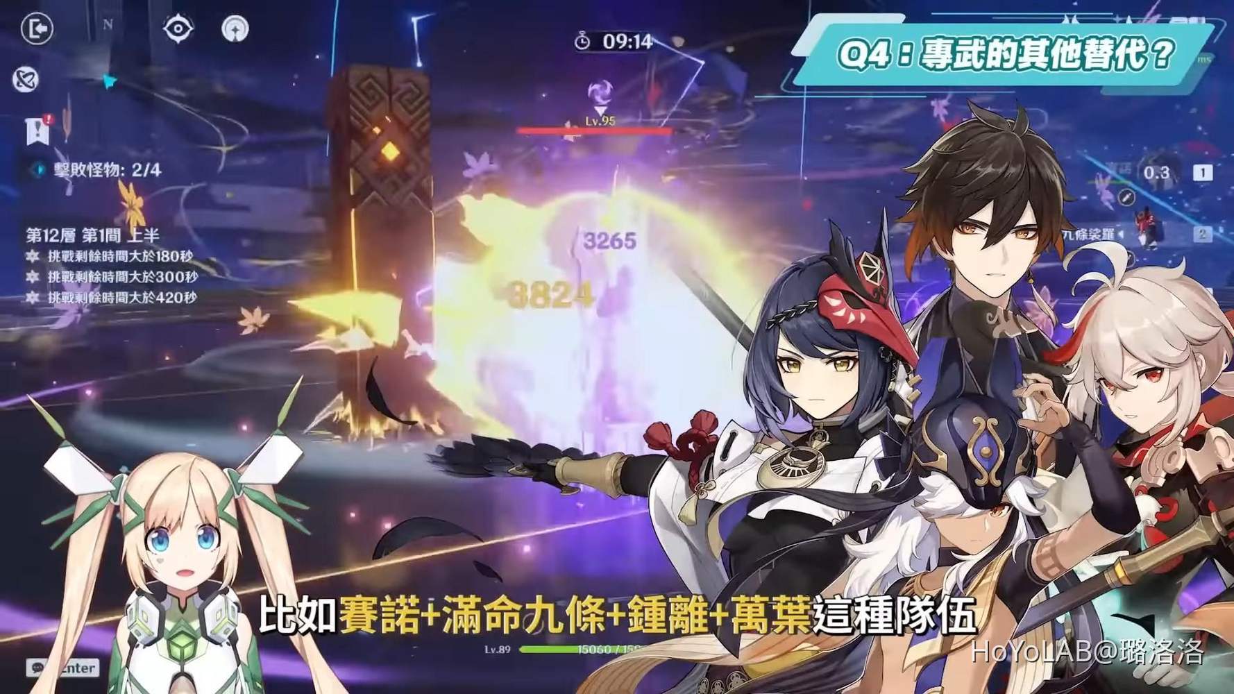 成瑤瑤,轉成雙草共鳴再提升元素精通給賽諾,進而提升傷害以及更多上草,同時也兼顧奶量的回復。