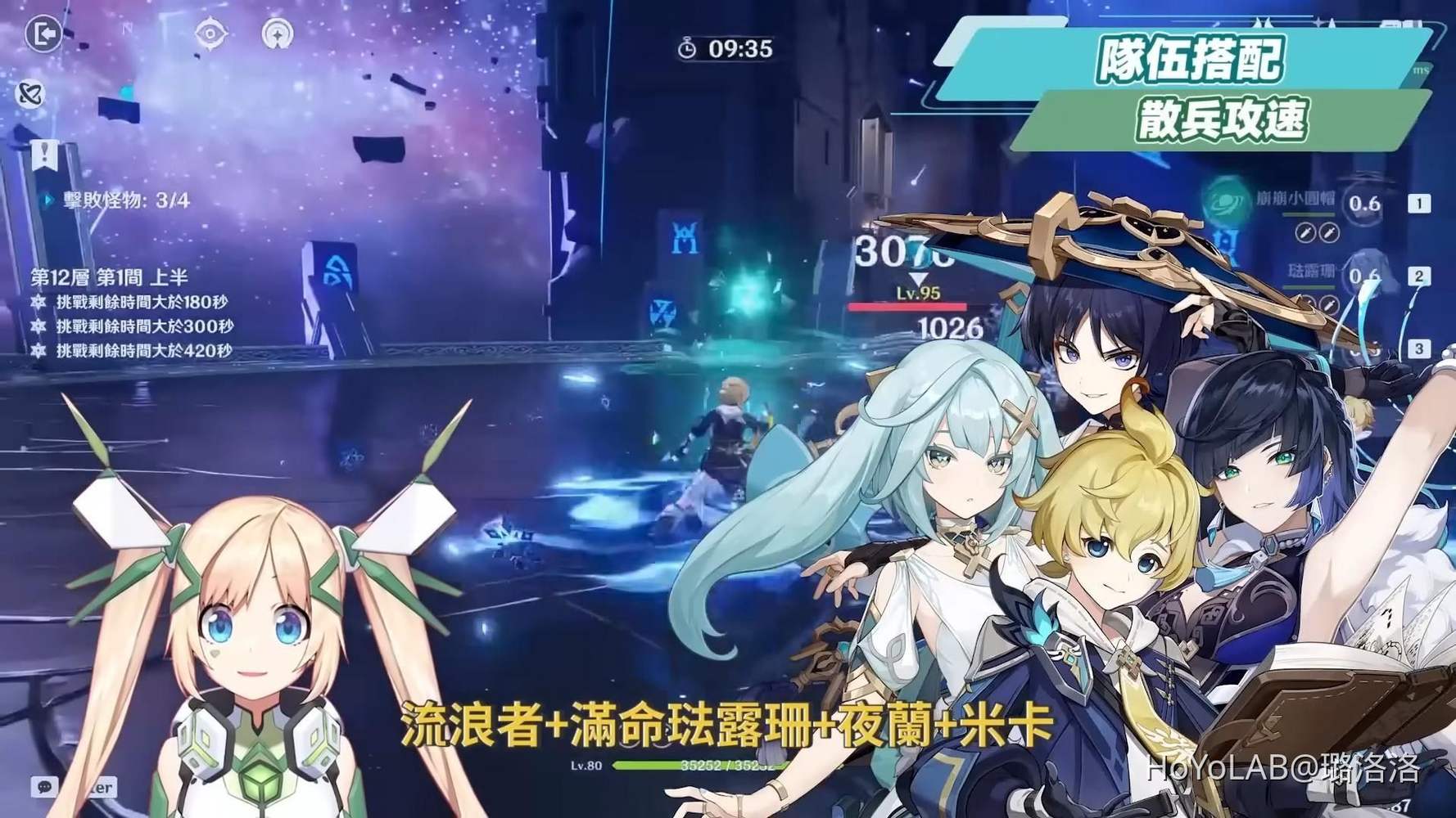 米卡提供攻速的部分也適合給以普攻輸出為主的流浪者,流浪者最關鍵的輔助主要是滿命琺露珊,因此剩下兩個位置也可以搭配一個米卡這樣提供攻速的輔助,並且也比較不需要要求米卡的命座,這邊的隊伍配置主要是流浪者+滿命琺露珊+夜蘭+米卡,輸出過程中主要是夜蘭QE→米卡QE→琺露珊Q→流浪者E站場輸出接Q的流程。