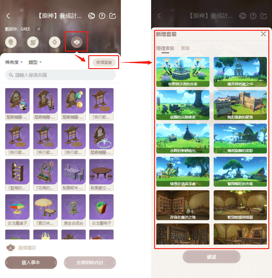 |養成計算器更新:新增擺設套裝一鍵新增;支援素材內容快速切換至Wiki查詢,刷素材不迷路!