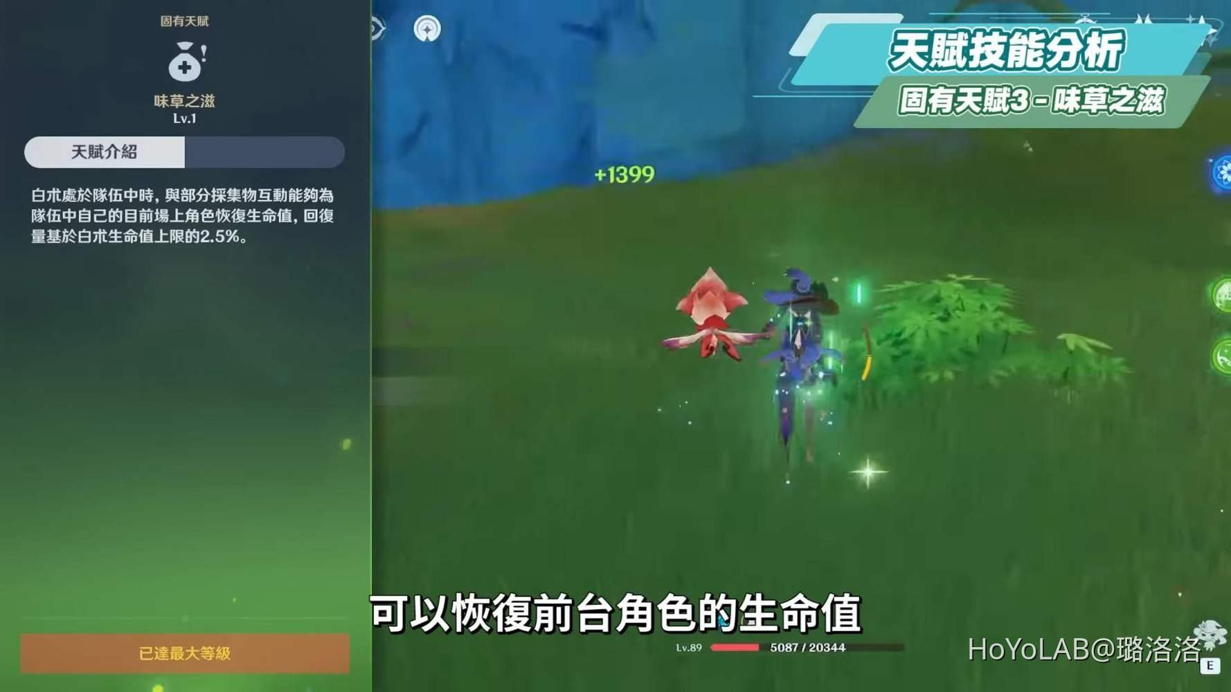 白朮的固有天賦3是個大世界探索中蠻方便的天賦,當角色在大世界採集東西時可以恢復前台角色的生命值,加上自身又是個移動七天神像,能有效幫助萌新在大世界的體驗。