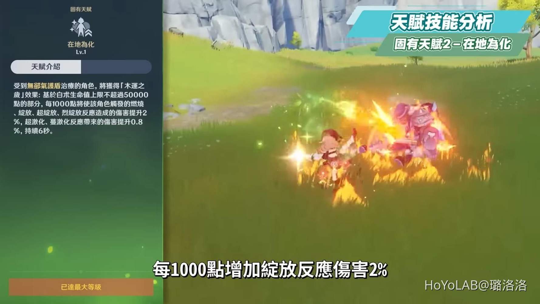 解鎖固有天賦2,可以使受到無*氣護盾治療的角色,能夠基於白朮生命值不超過5萬的部分,每1000點增加綻放反應傷害2%、激化反應傷害增加0.8%,持續6秒,這裡的傷害提升會與元素精通的提升相加來計算,基於這個固有天賦,白朮的生命值畢業目標可以堆到5萬就好。繼續堆疊生命也不會再增加更多傷害。