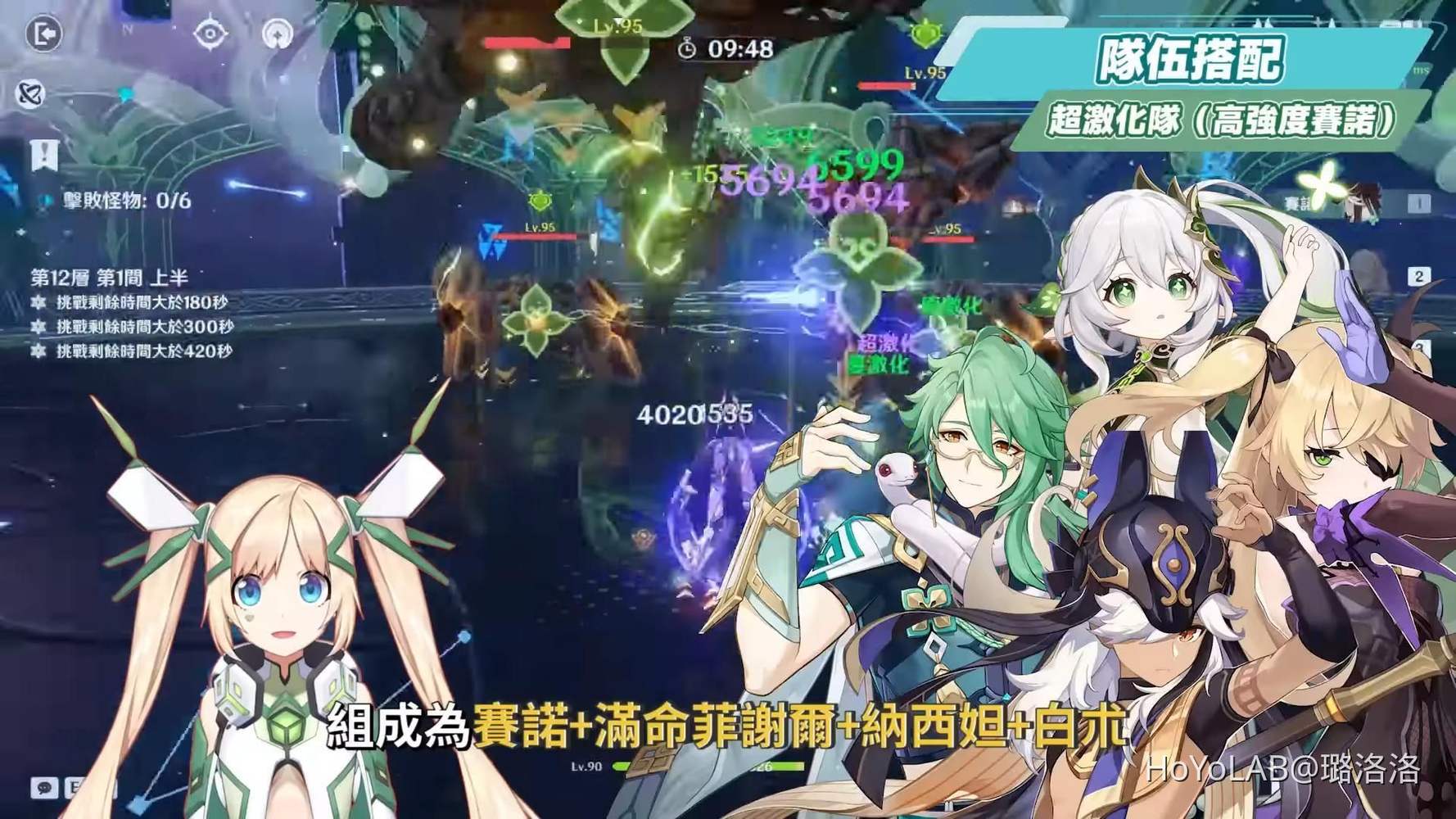 而若是2命以上賽諾或是裝備面板練度好的賽諾,因為不需要依賴超綻放的傷害,所以搭配白朮在純打超激化的隊伍中實戰上效果很不錯,組成為賽諾+滿命菲謝爾+納西妲+白朮,深境螺旋中原激化狀態可以不斷維持,而且也能應對多波段敵人讓賽諾進行長時間站場,雙雷與雙草的配置,依靠大招的賽諾和白朮都能得到有效緩解,賽諾在深淵站場時可以直接開大打到最後。