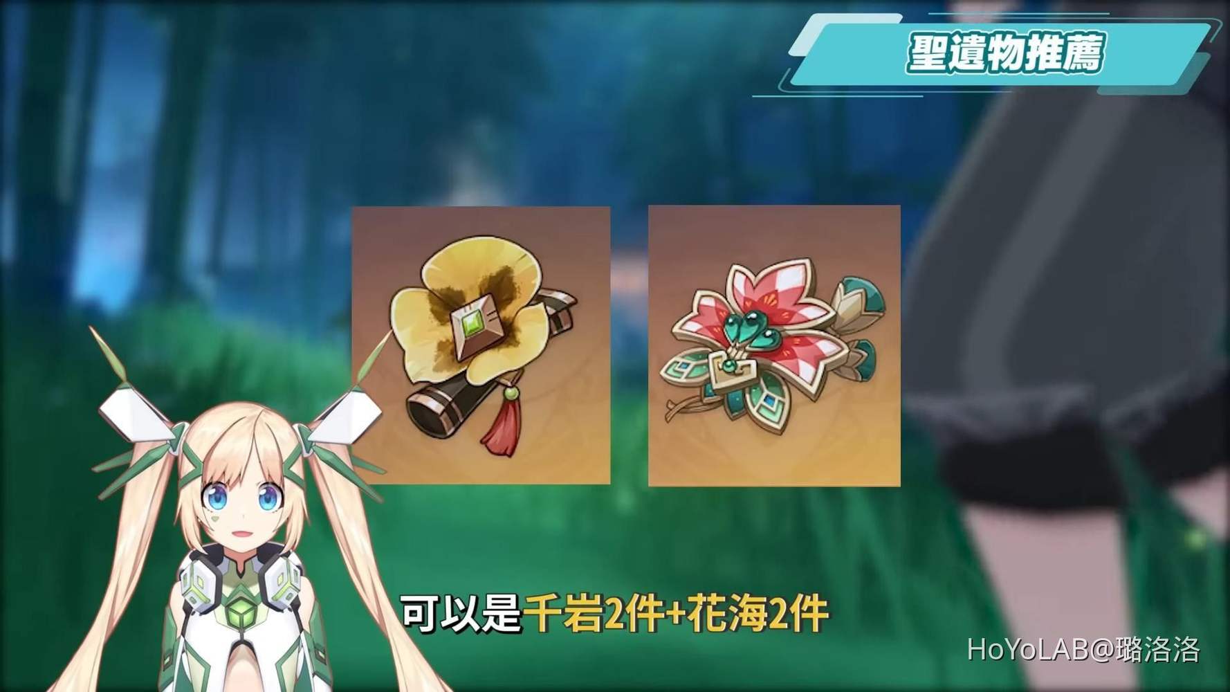白朮在聖遺物配置的部分很簡單,由於需要堆疊到5萬生命值去吃到固有天賦2的上限,因此可以以生命相關的聖遺物套裝作為主要配法,可以是千岩2件+花海2件,而若是追求更高的治療量也可以是生命套2件+治療套2件,或是海染4件套加減補一些傷害,但要先確保聖遺物主屬性有盡可能多的生命值可以堆到42000~50000血量,而如果隊伍中只有單草配置、或是沒有其他人穿深林套的話,則會建議讓白朮穿戴深林4件套。萌新前期過渡的話可以讓白朮穿戴流放者2件+學士2件。