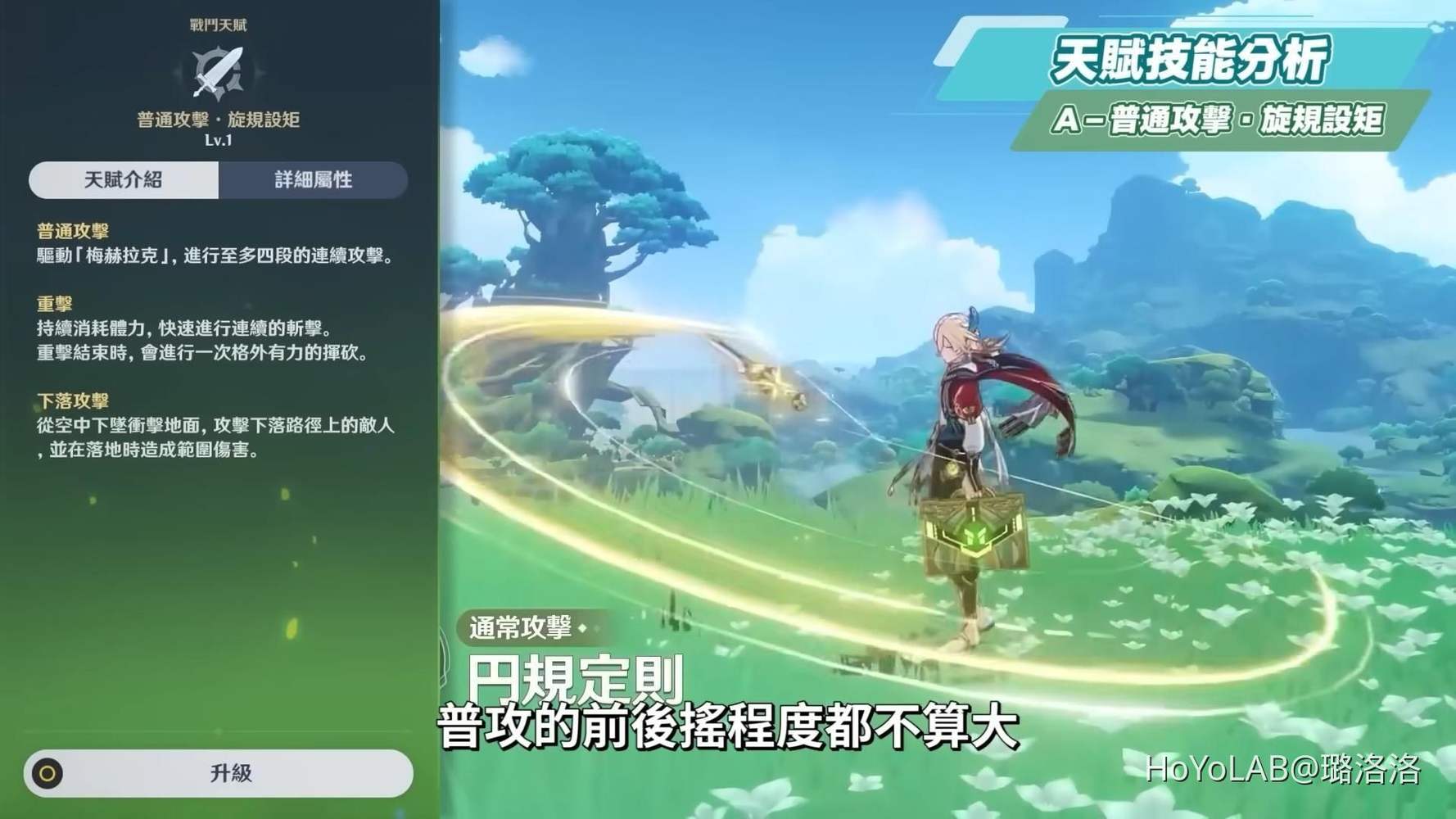 卡維的普攻是四段式的揮擊,普攻的前後搖程度都不算大,因此在站場時的手感很不錯,若是覺得大劍揮砍的速度偏慢的話,可以透過兩命解鎖提升普攻攻速。並且卡維本身不需要打草元素直傷,所以卡維的普攻一般來說也可以不用升級,主要可以當作開Q後用來站場上草的作用,實戰中也可以搭配3A+衝刺或是3A接E的方式來攻擊。