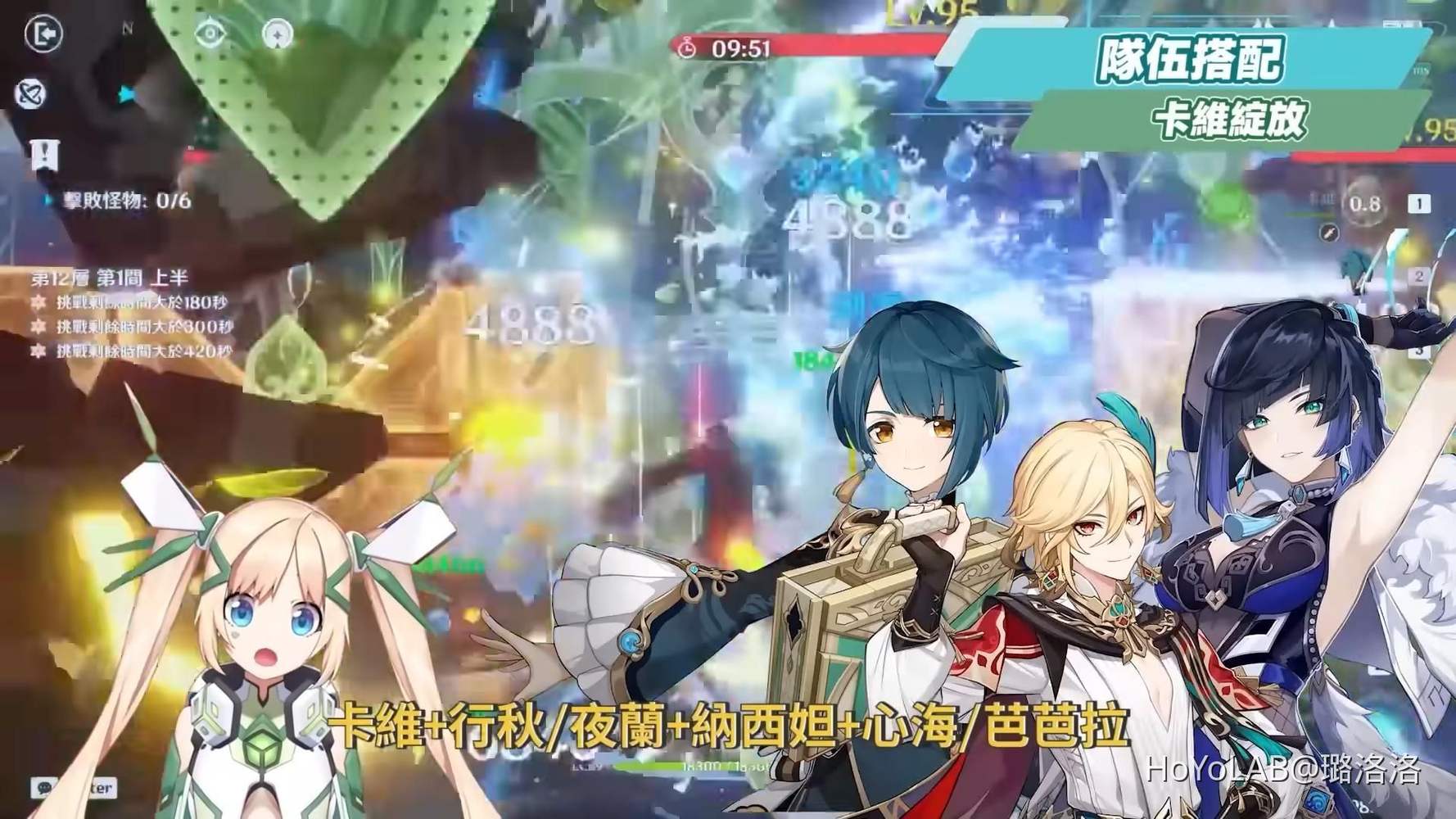 再來是卡維自成一家後的綻放,就可以靈活變換組隊陣容,若是要組原綻放隊伍的話可以是卡維+行秋/夜蘭+納西妲+心海/芭芭拉,納西妲也可以替換成白朮或瑤瑤,有奶媽之後也可以再放心海/芭芭拉的奶媽位換成其他可以掛水的角色。