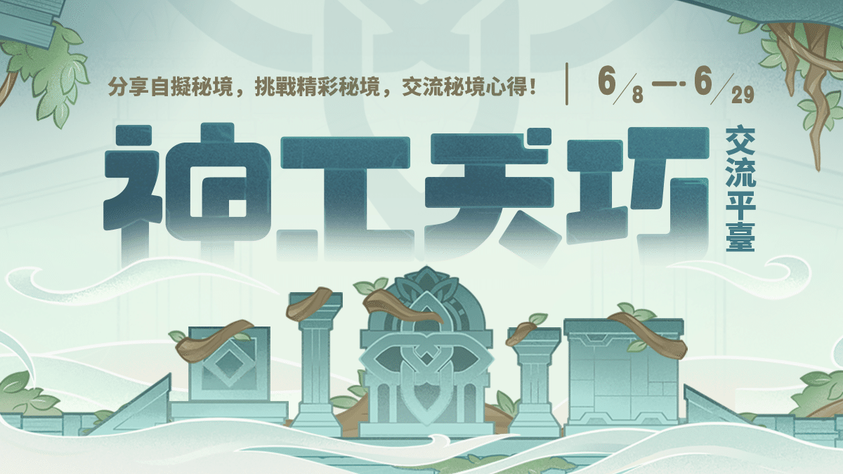*請注意,遊戲內「神工天巧」活動開放時間為各伺服器時間2023年6月8日 10:00。歡迎旅行者們在遊戲內活動開放後前往參與,並在「神工天巧」平臺內投稿分享你的挑戰實錄。