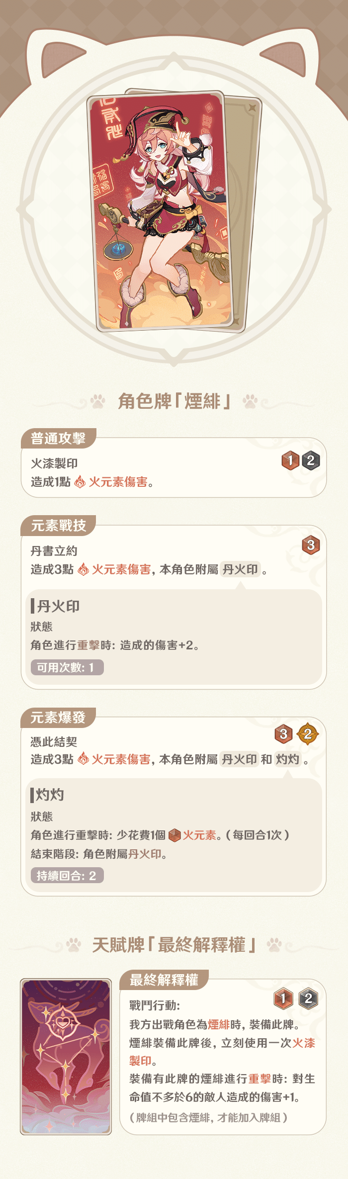 *開發團隊將持續關注旅行者們的遊戲體驗,並改善卡牌平衡性。卡牌資訊請旅行者們以遊戲內正式內容為準。