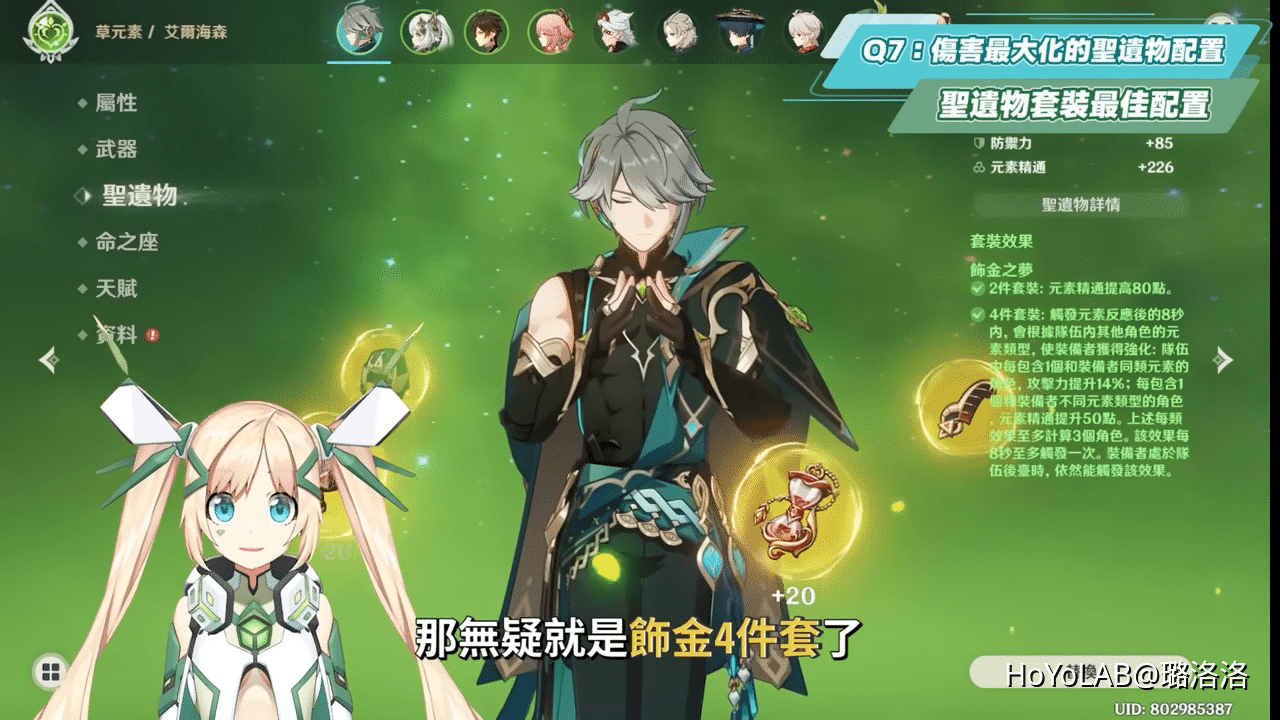 【原神】艾爾海森10題復刻Q&A🌟▸畢業面板怎麼看?打滿6次琢光鏡光幕的最高傷害手法?命座、專武優先?最佳聖遺物配置?搭配萬葉萌新如何抽?有&沒有納西妲的主流隊伍推薦! ▹璐洛洛◃