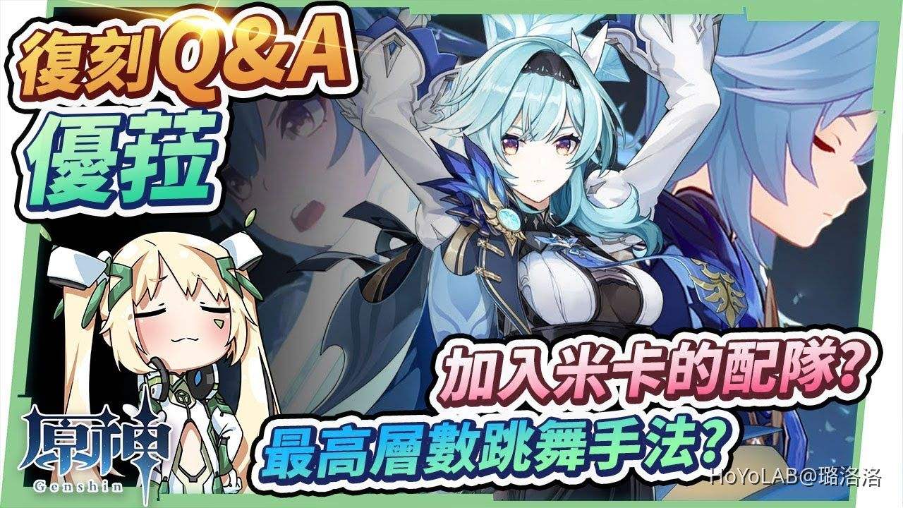 經歷了500多天,辣個女人終於復刻了!今天要帶來的就是有關於優菈的復刻Q&A,提供給在猶豫要不要抽優菈、或是想知道如何培養優菈的肉肉們參考,洛洛也在Instagram限時動態上募集了一些大家常見的相關問題,將會挑出一些比較重要的統一補充疑問。優菈其實並不是一個推薦剛入坑不久的萌新抽取的角色,除非你是打算不攻略深境螺旋,單純大世界探索自娛、滿足自己的角色收藏喜好就沒關係,因為優菈其實是一個不算好培養、畢業難度、操作難度、配隊要求也比較高的角色,在看復刻Q&A之前,也可以再回去查看3.8前瞻直播懶人包中關於優菈的抽取建議,以及也可以複習優菈角色全分析影片中,關於技能特性機制與基礎觀念,再來看復刻Q&A會比較容易理解與上手,稍後主要會帶來優菈在草元素體系、米卡加入後的組隊陣容變化、專武的替代與相關的畢業面板參考,那麼就讓我們開始吧!