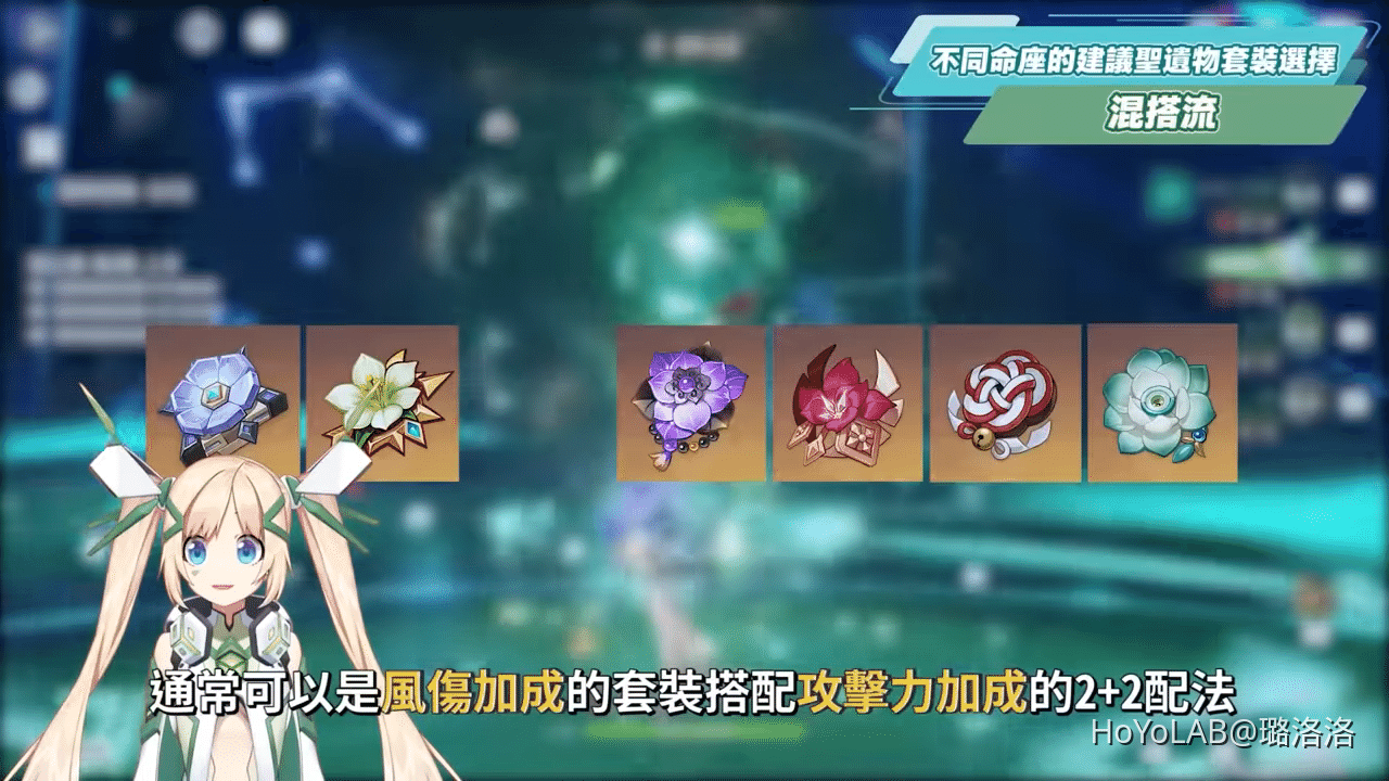而若是不想走重擊流,想走一種比較穩定提高傷害、好畢業的聖遺物配置,通常可以是風傷加成的套裝搭配攻擊力加成的2+2配法。
