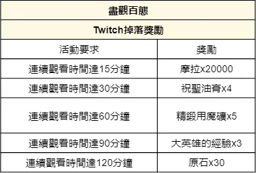 *Twitch掉寶每個階段的獎勵皆為30萬份,數量有限,先到先得!