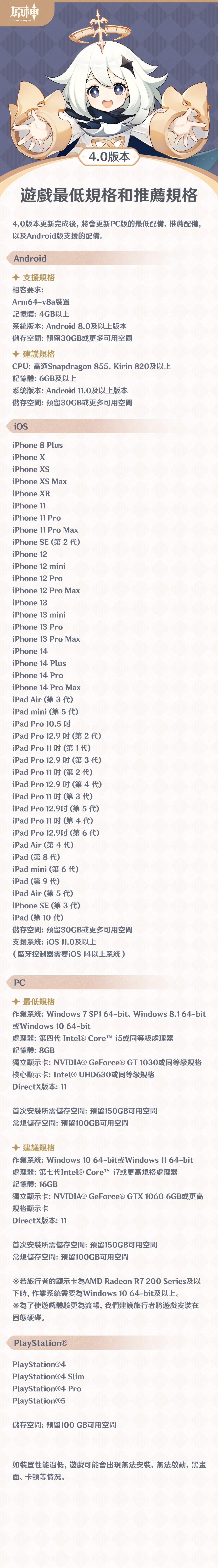 在4.0版本,為了改善遊戲性能體驗,部分遊戲檔案有調整,因此本次更新所需空間較大。
